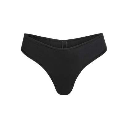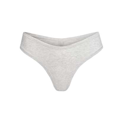 Featuring a dipped front and high cut fit, this flattering throwback thong underwear style is updated in a stretchy cotton material for comfort.