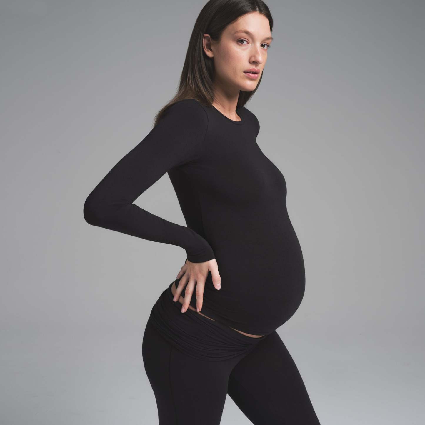 - Scoop neckline, Long sleeves, Room for growing baby bump, Standard length