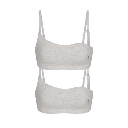 Feel supported by skithtms through every stage. This scoop neck bralette 2-pack features front straps with clasps that unhook for easy nursing and pumping. Designed in our soft and stretchy Cotton Jersey, this maternity solution offers unmatched comfort pre to post-pregnancy. Complete with adjustable straps, an elastic underband, and a hook and eye back closure for added support.