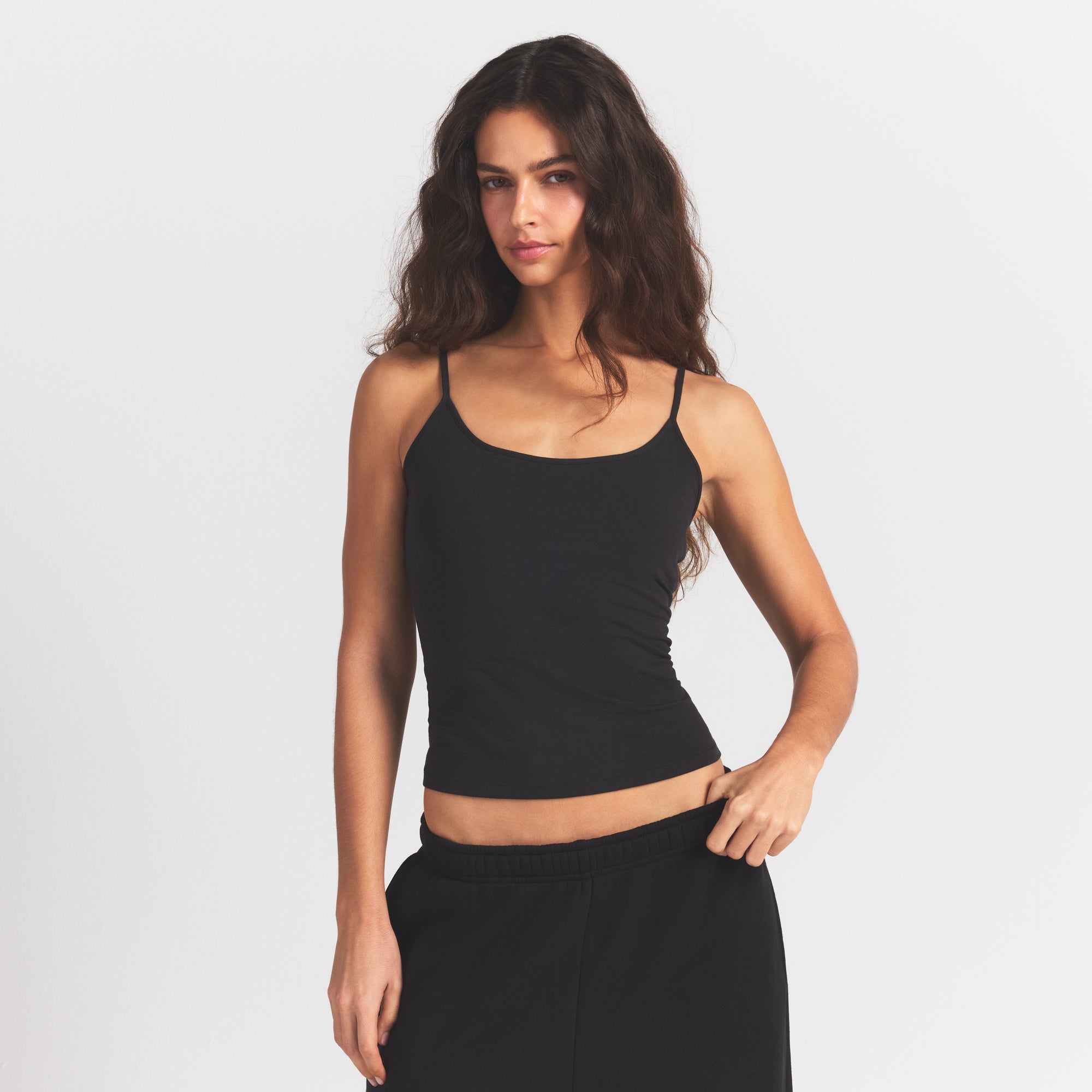 An essential with edge, this body-hugging jersey cami is reimagined. Designed in our signature Cotton Jersey fabric with a soft feel and stretchy fit.