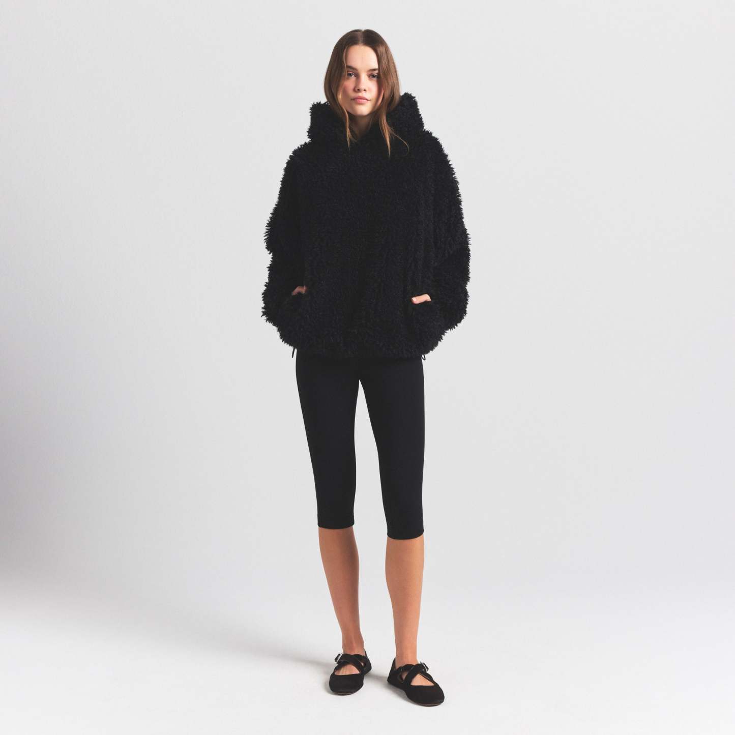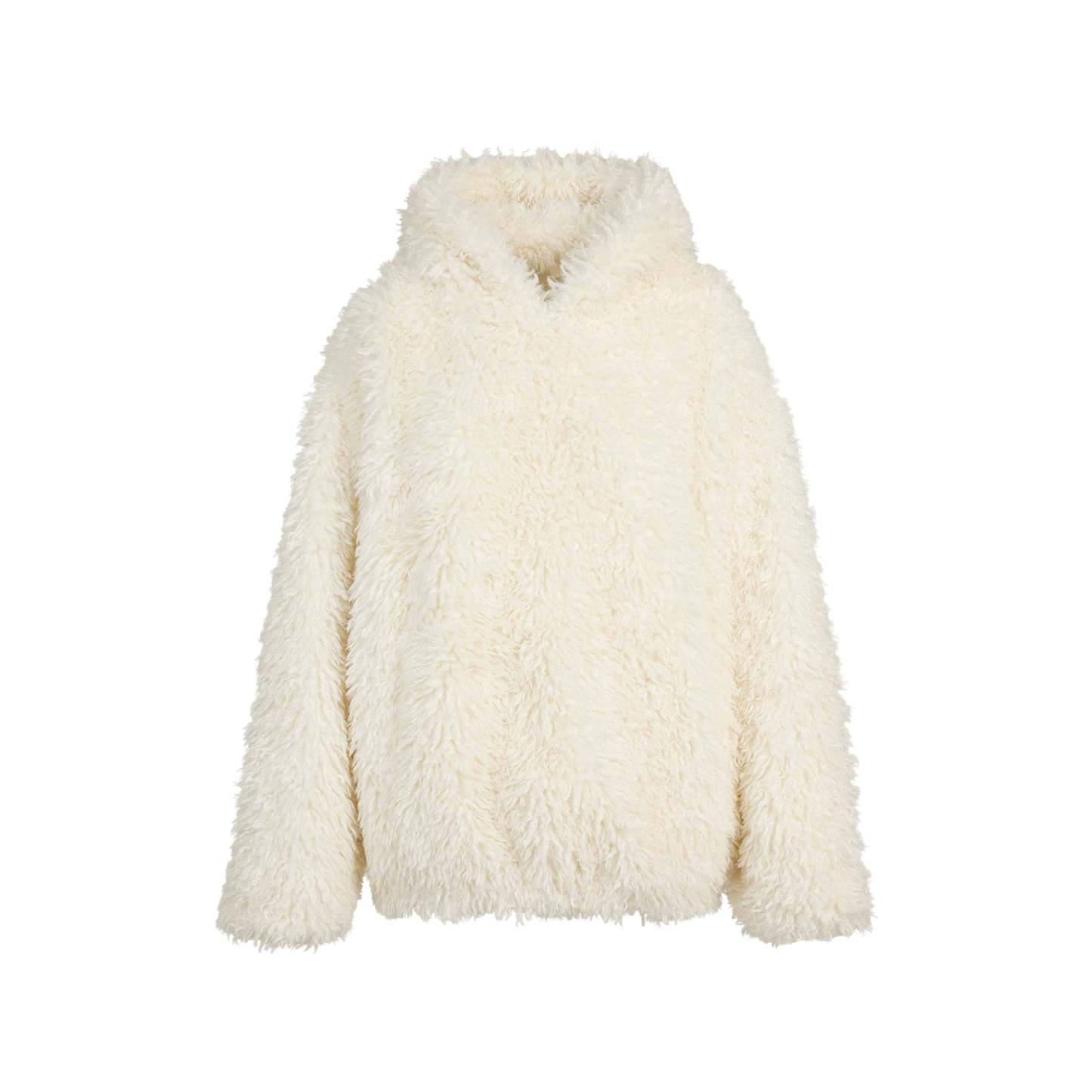 Peak cozy, incoming. This fluffy faux-fur hoodie has an ultra-plush feel and a soft jersey lining for total comfort inside and out. Features an oversized cut with an adjustable bungee hem, drop shoulders, and a side-pocket design.