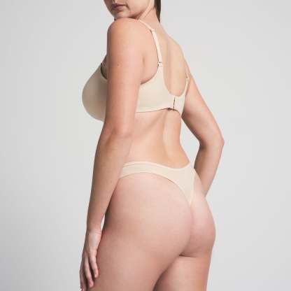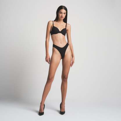Featuring a dipped front and high cut fit, this flattering throwback thong style is updated in a soft, butter fabric with innovative stretch. The Dipped Thong has a no cut design that prevents digging and gives a second skin feel.