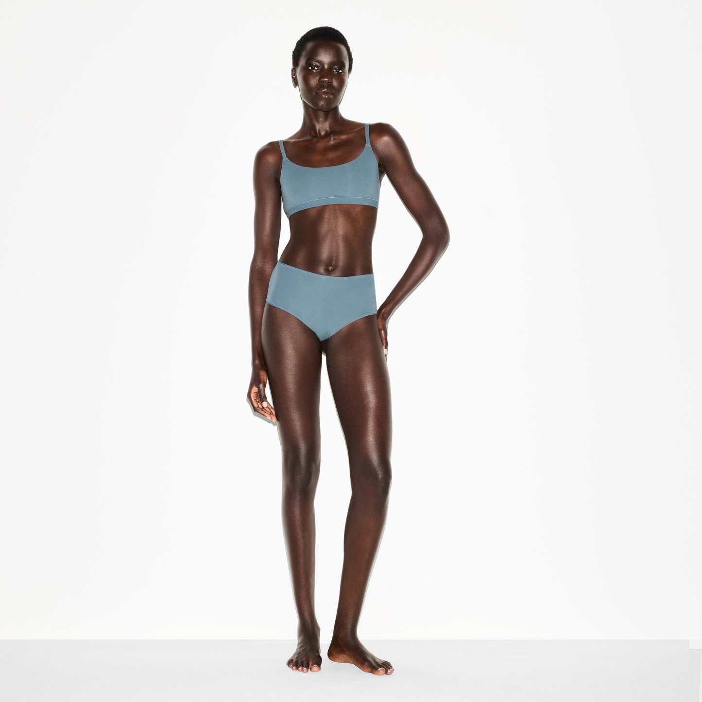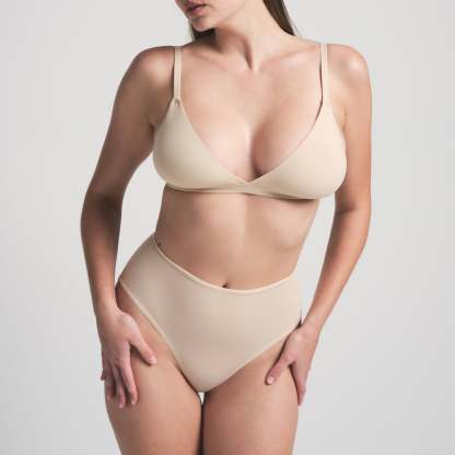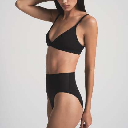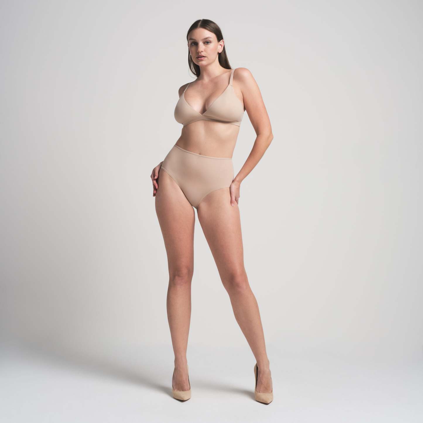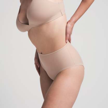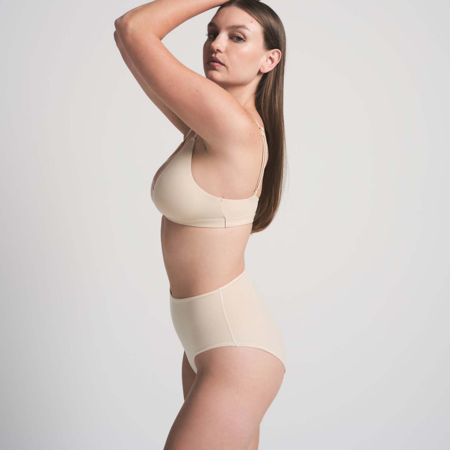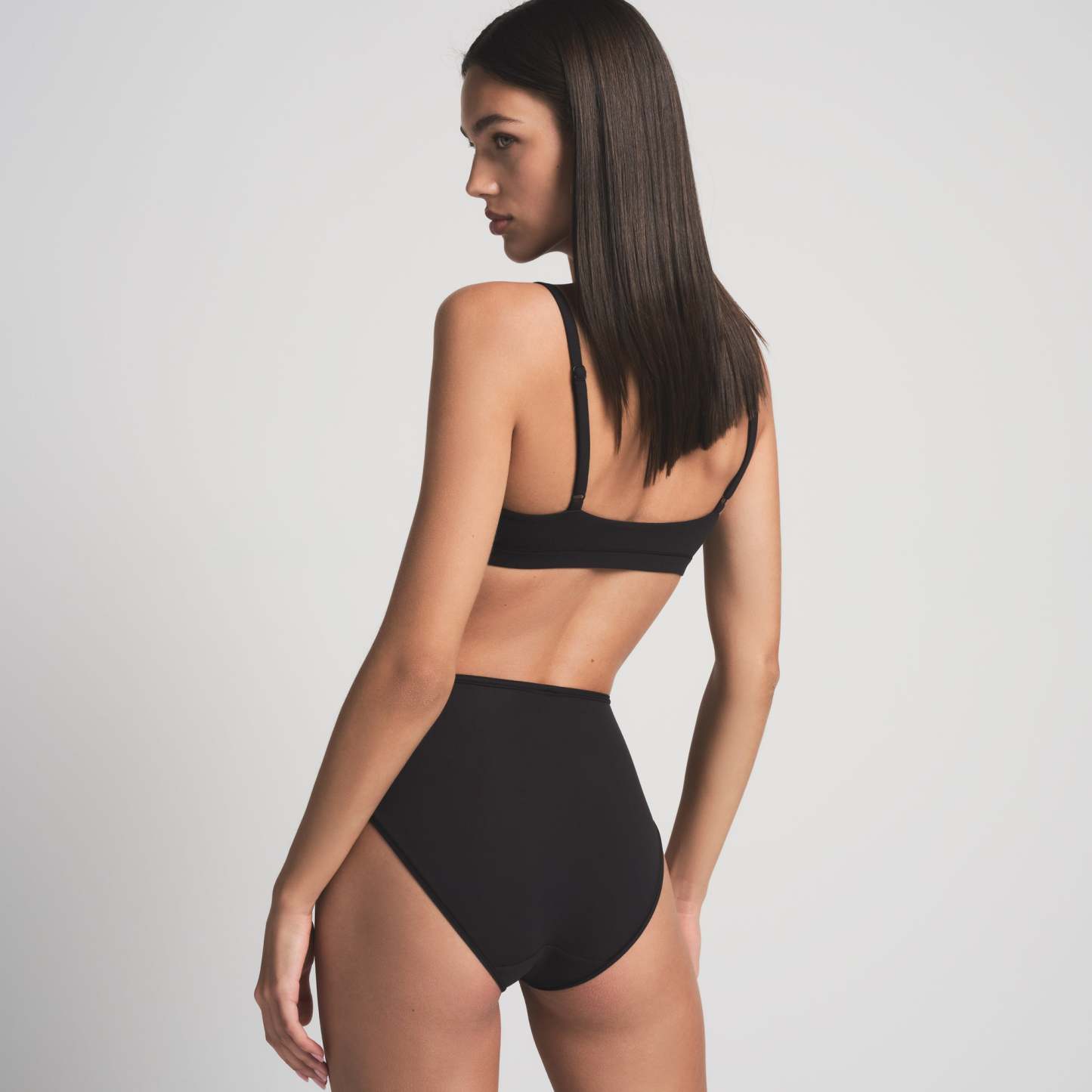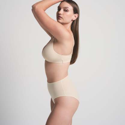 Hits at natural waist, Full back, No cut finishing helps to prevent digging, 100% Cotton gusset