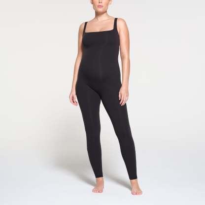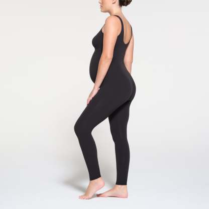 This one-and-done piece goes with everything, including your bump. Slip into the buttery softness of this catsuit made with two layers of our best-selling Fits Everybody fabric designed to stretch with your growing belly for an ultra-flattering fit and second skin feel. Features a built-in shelf bra with smooth underbust elastic, a chic square neck, and tank straps. Fits true to size.
