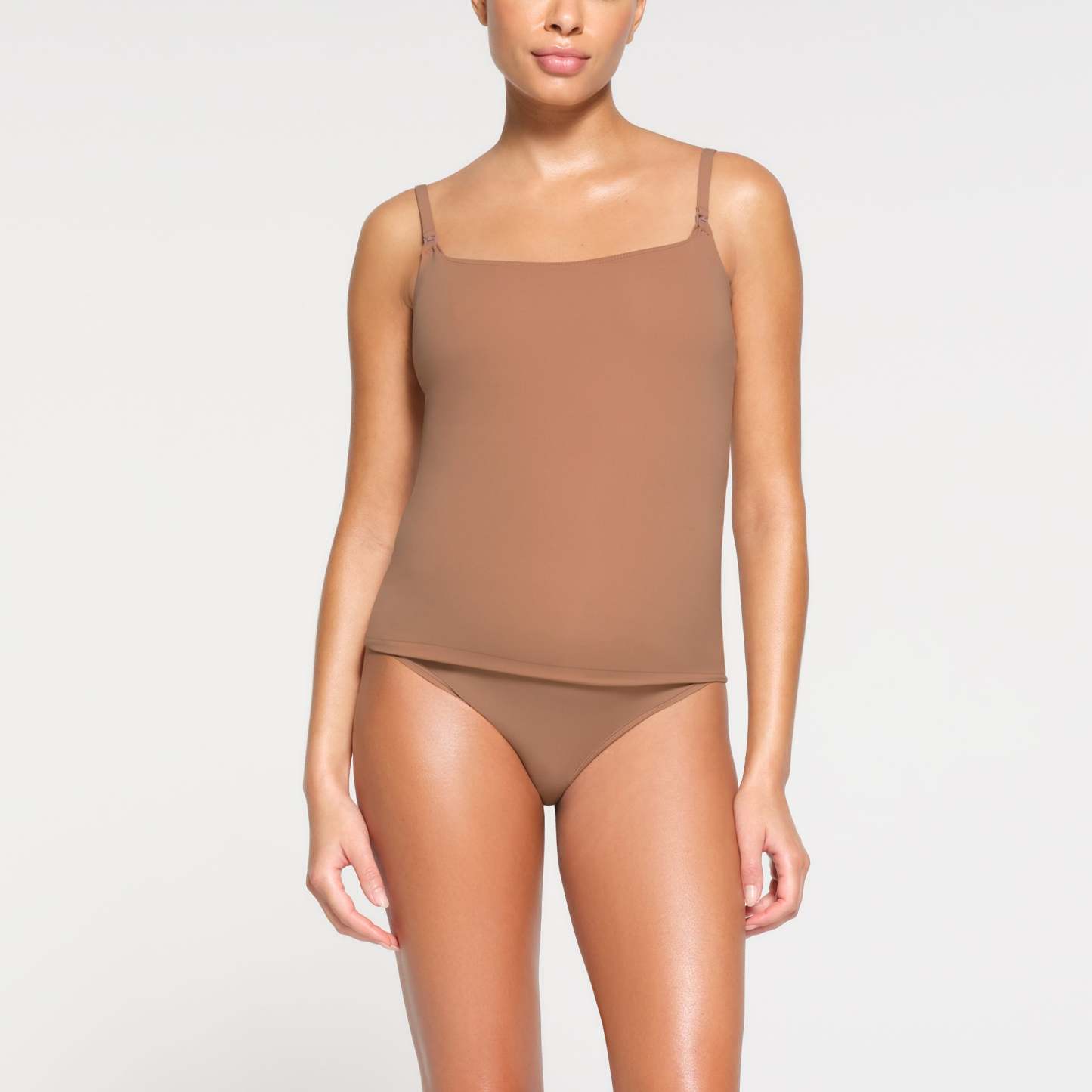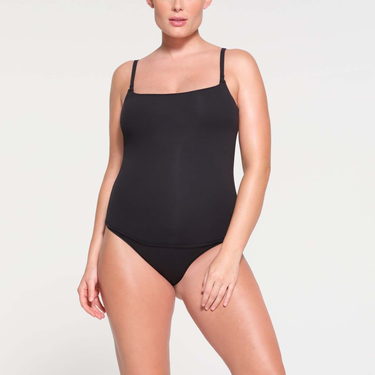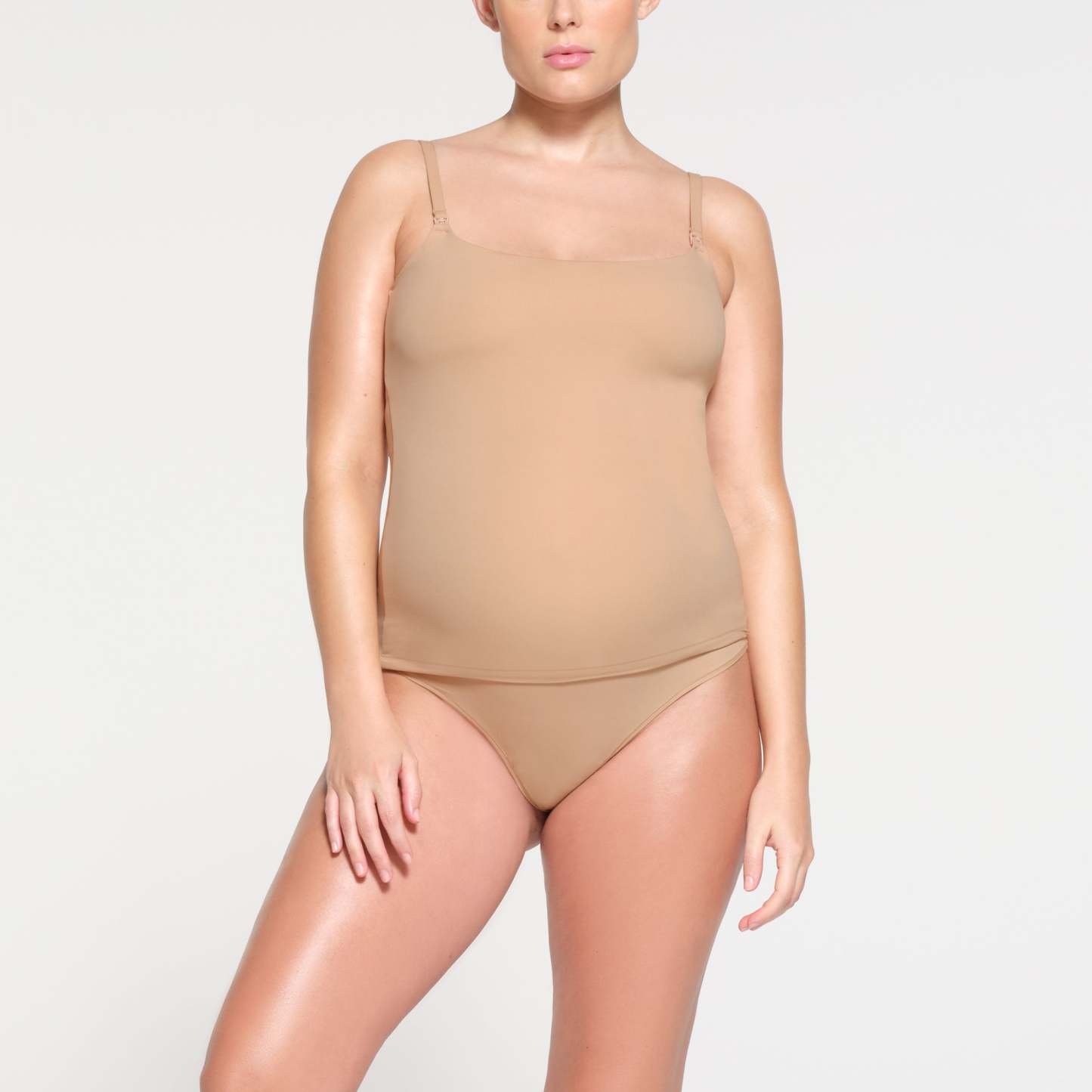 This scoop neck tank is made with our signature buttery-soft fabric that stretches to twice its size and has a 2-ply construction. Features clasps at the adjustable front straps to unhook for easy nursing and pumping. The built-in shelf bra with elastic at the underbust and additional side fabric provide extra comfort and support. Fits true to size.