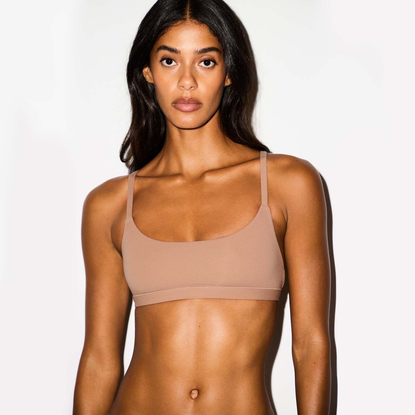 The bralette everyone swears by. With its buttery-soft fabric and flattering fit, this stretchy pullover molds to and supports your bust while feeling light and comfortable. The second-skin design prevents digging and ensures a smooth look under clothing. Features a chic scoop neck and adjustable shoulder straps. Fits true to size.