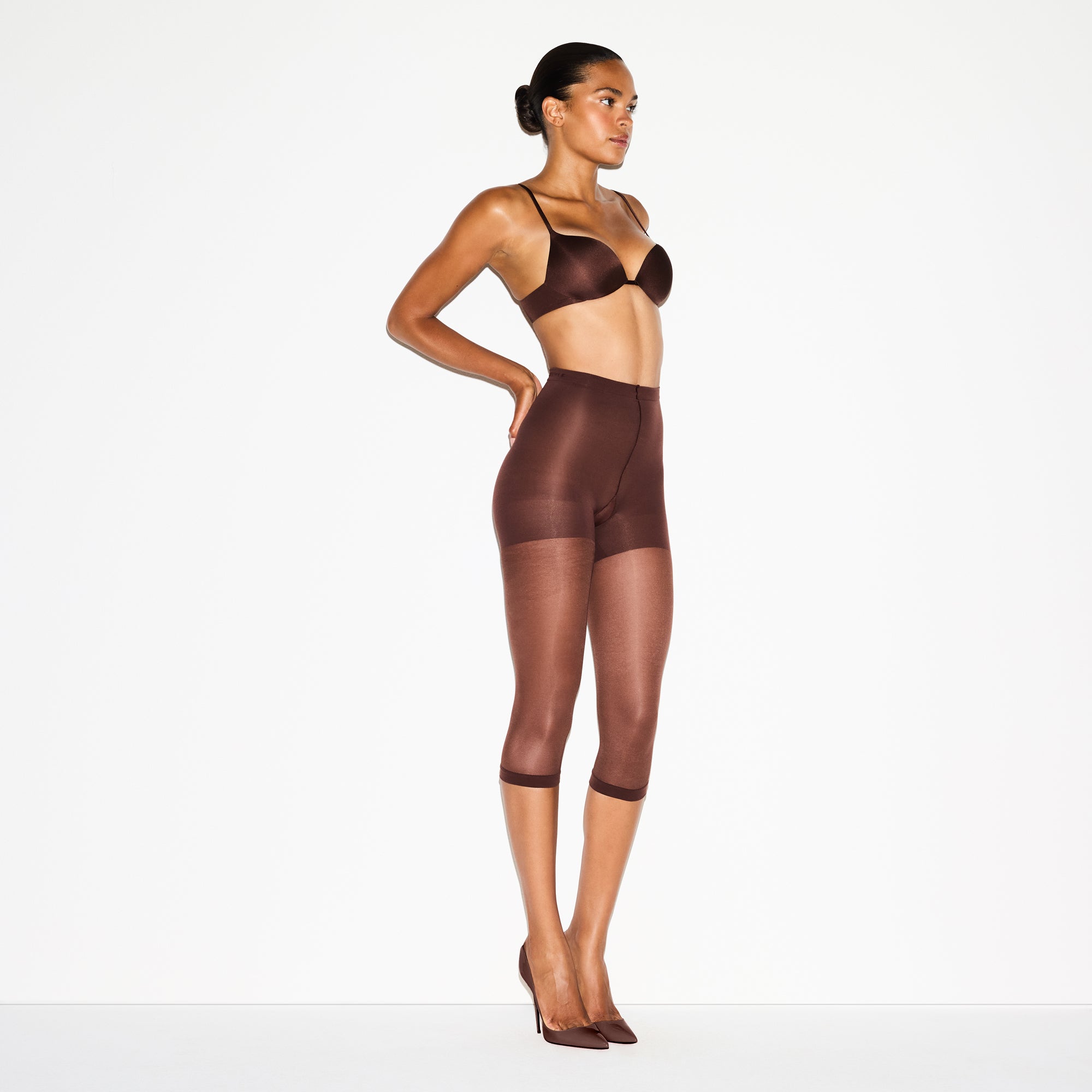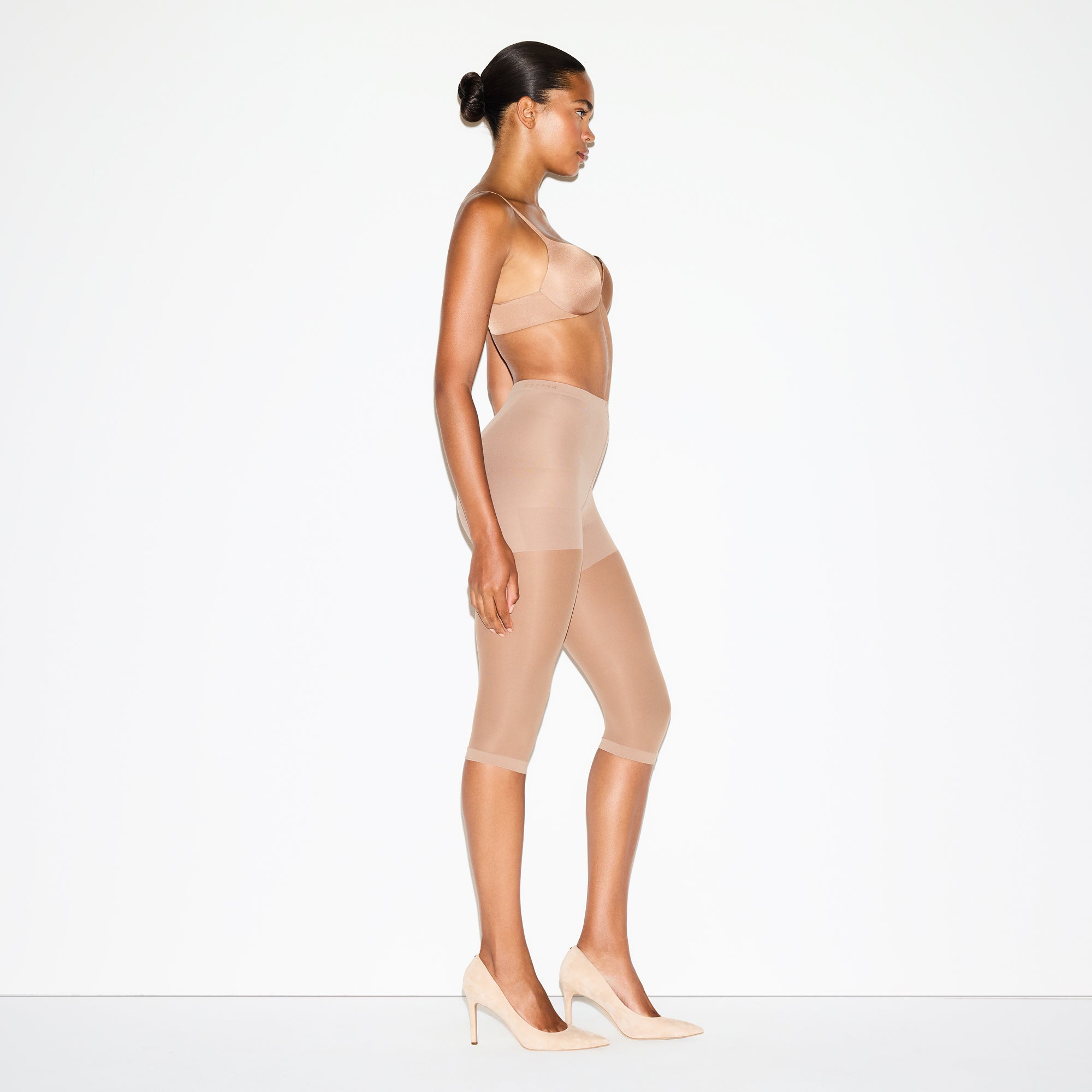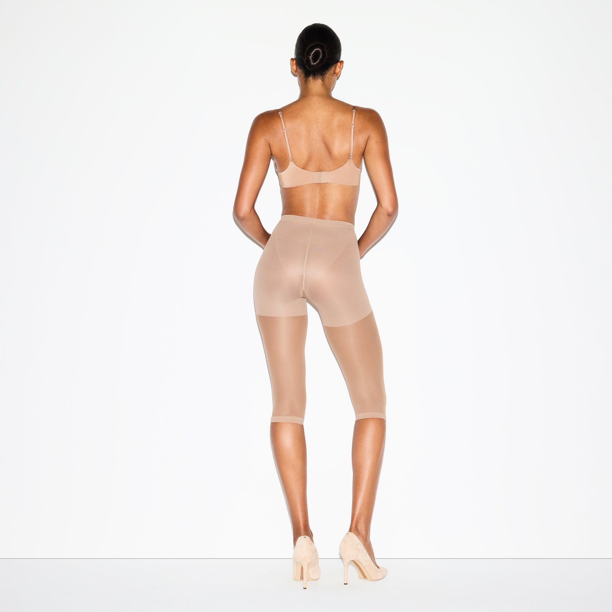 Compressive at tummy, Thighs, And back zoning, Semi-Sheer hosiery leg, 3⁄4 length – cropped length