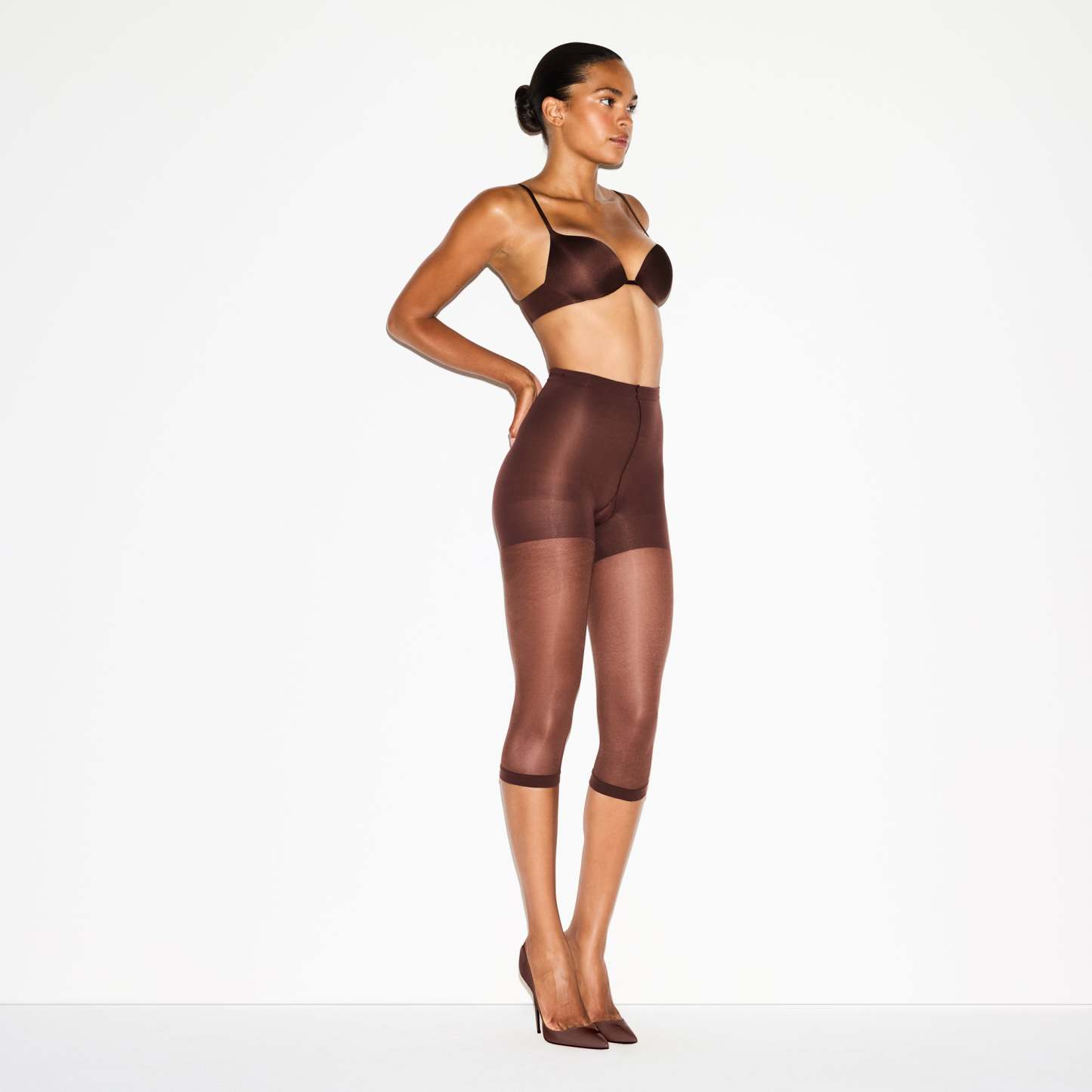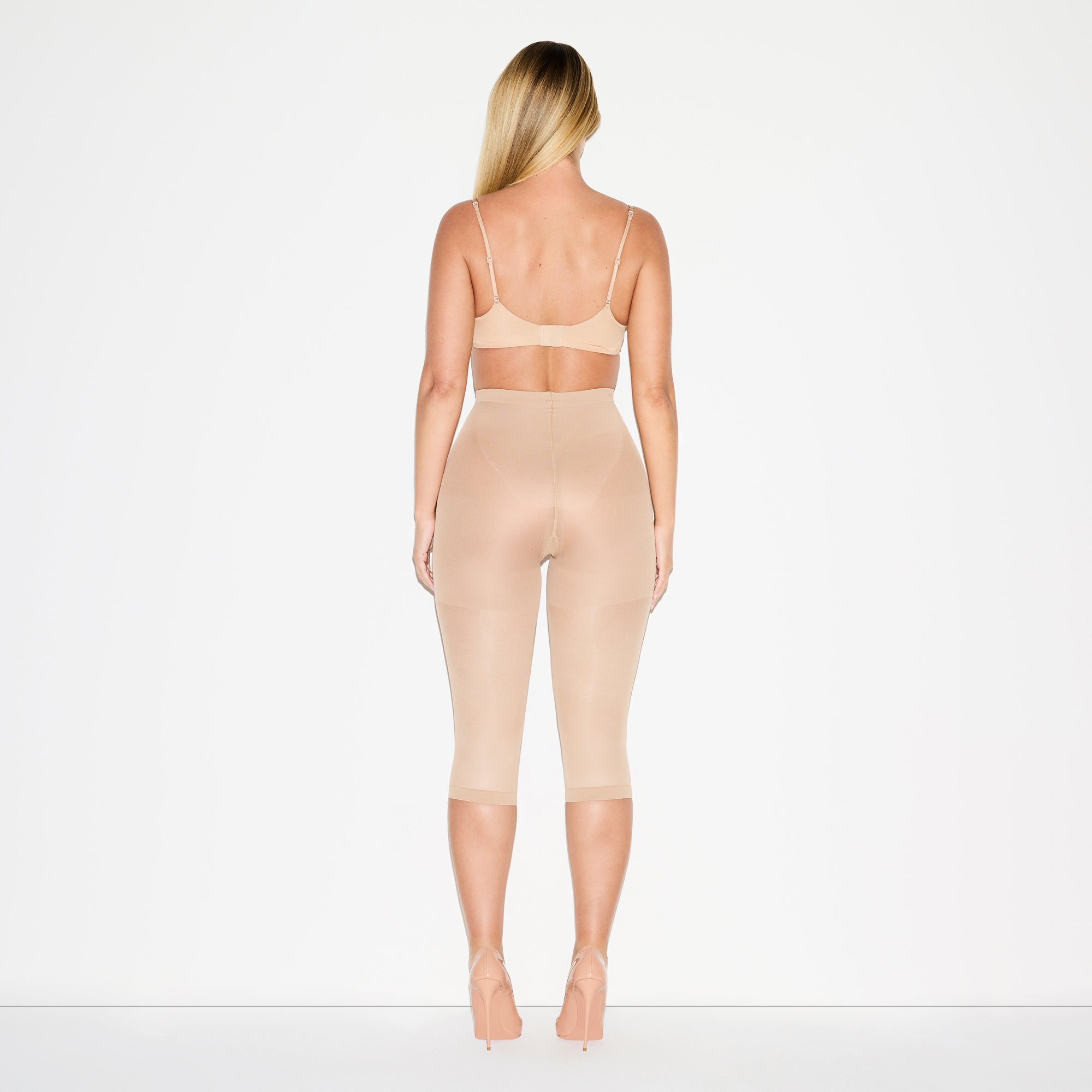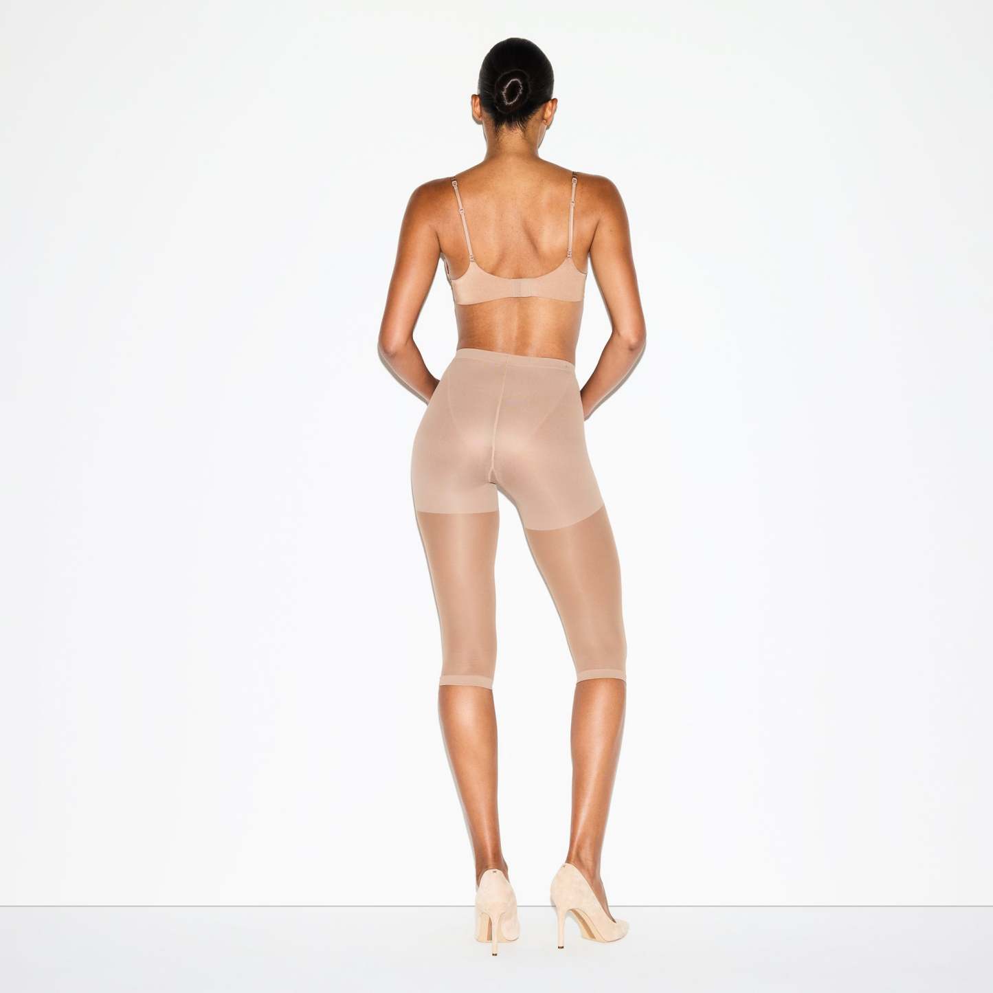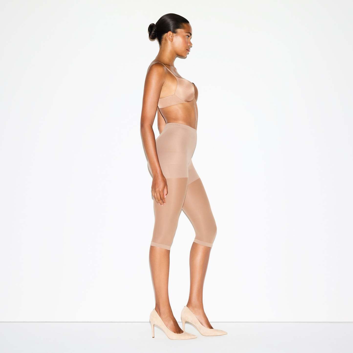Compressive at tummy, Thighs, And back zoning, Semi-Sheer hosiery leg, 3⁄4 length – cropped length