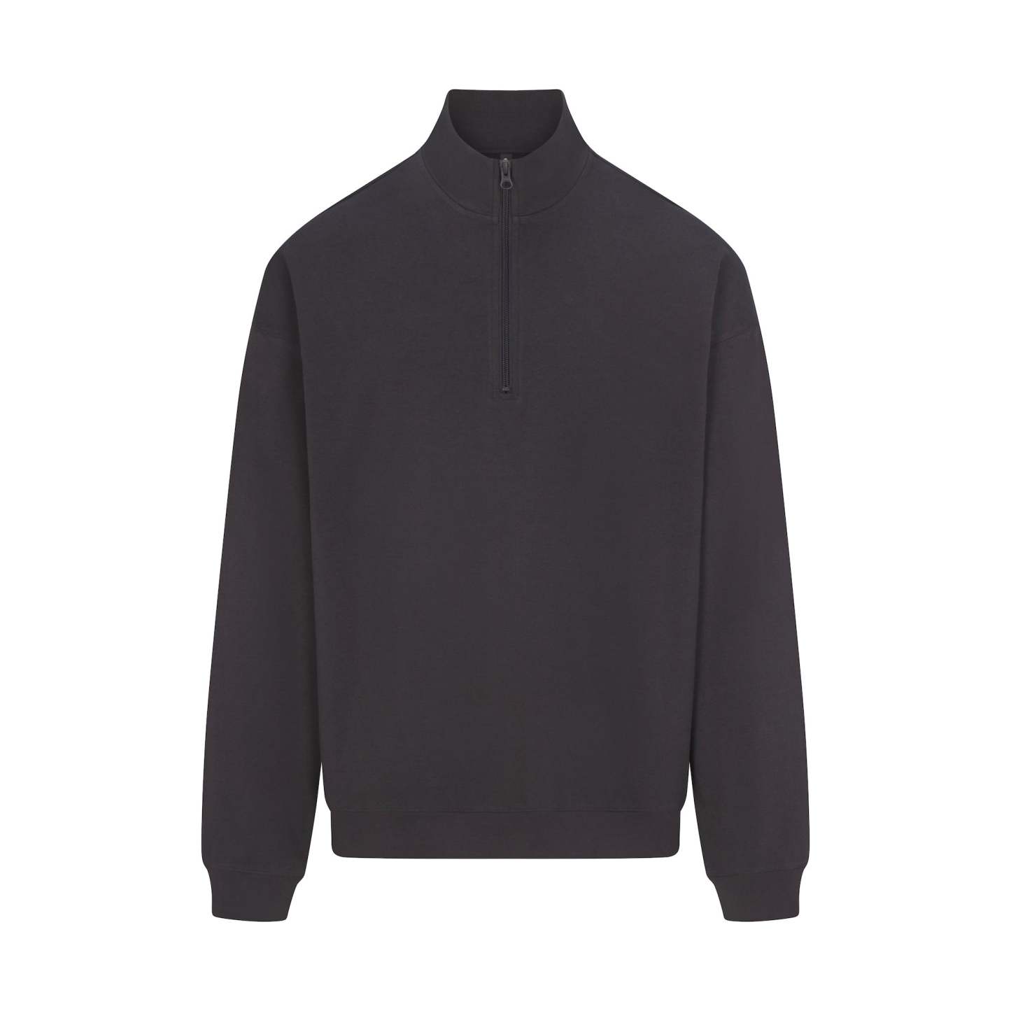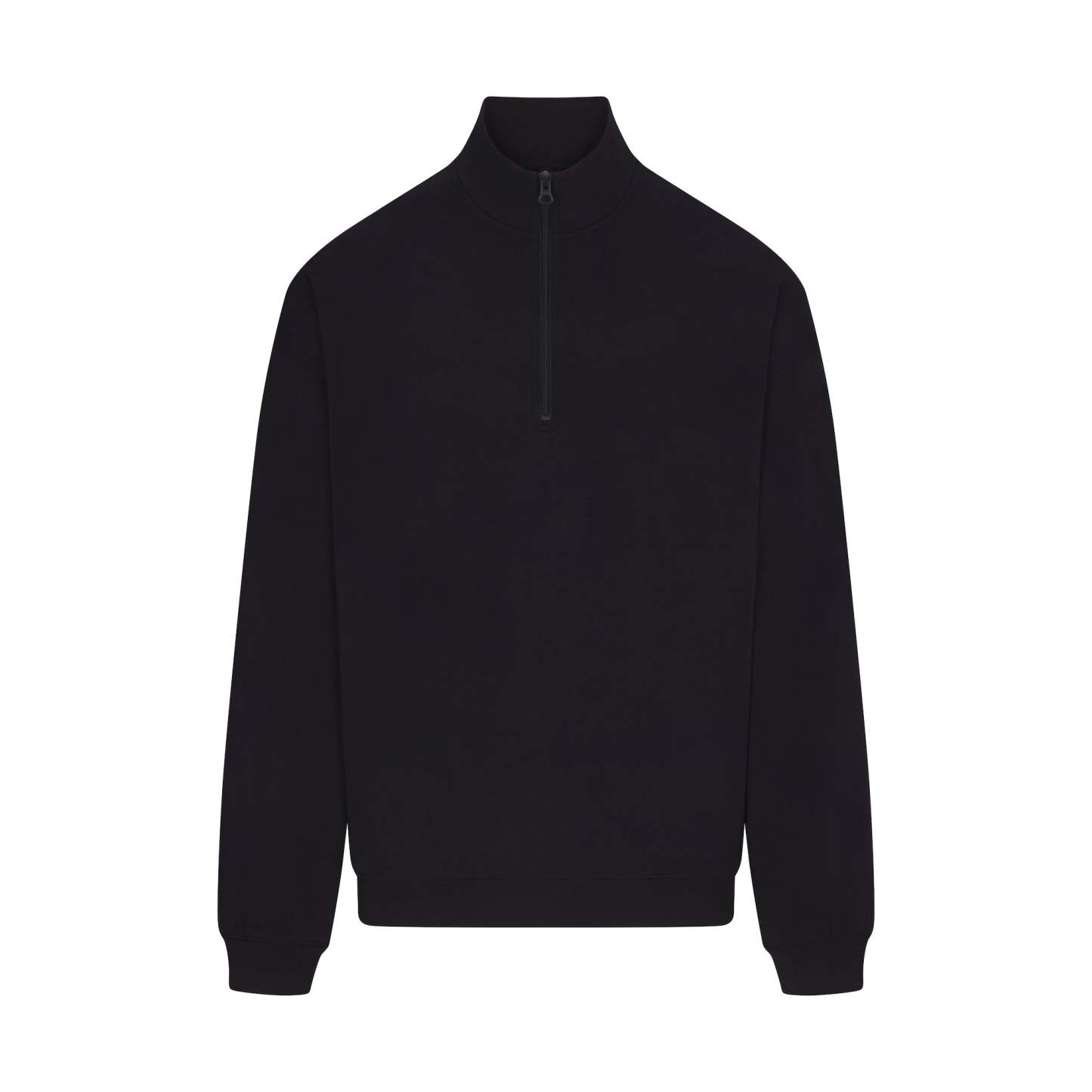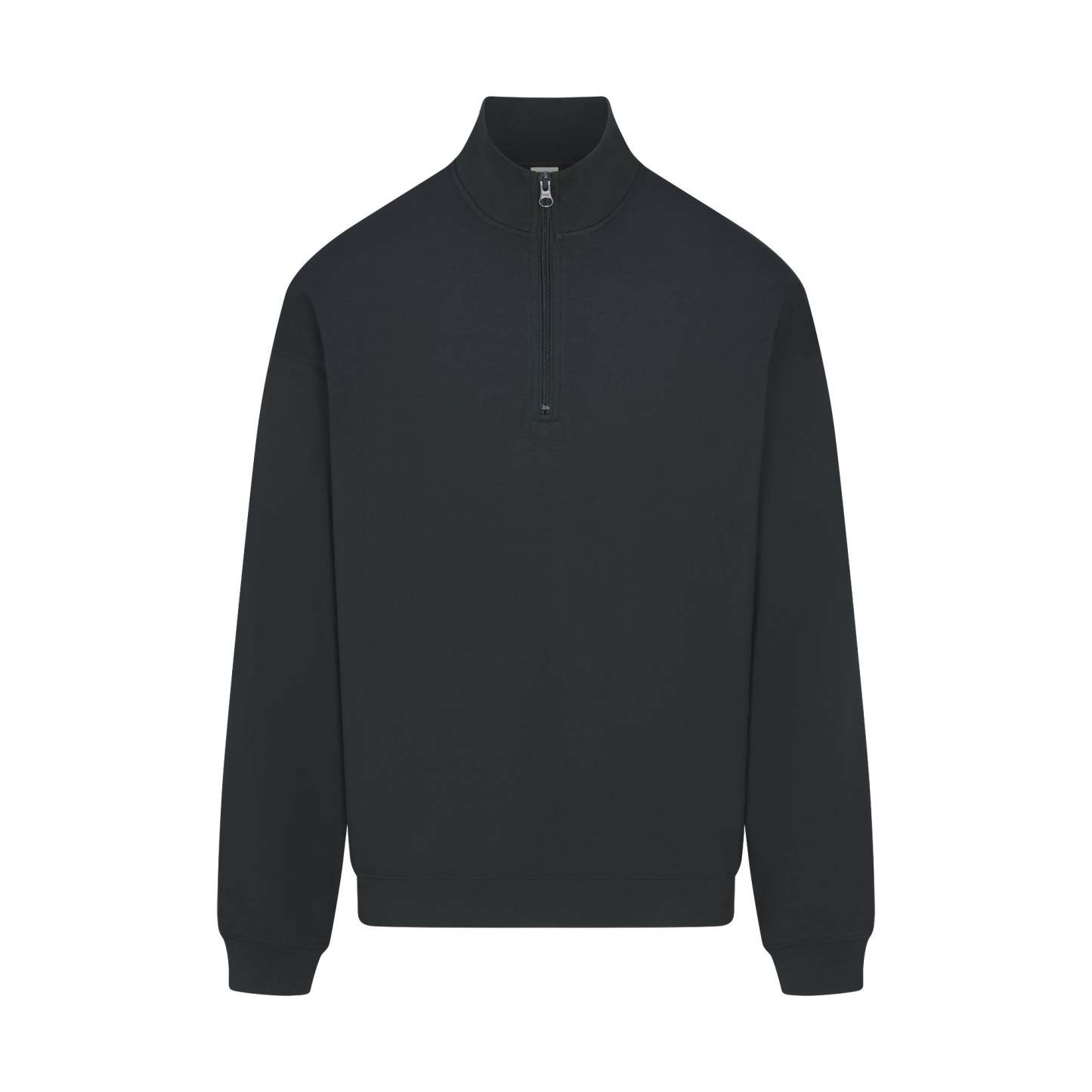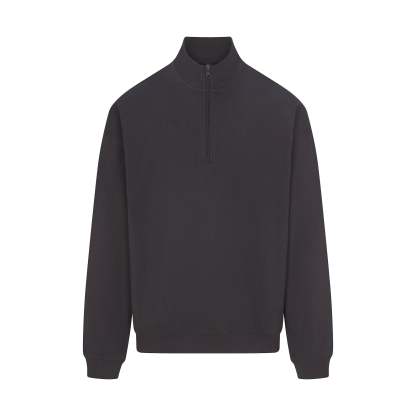 - Collared quarter zip, Rib cuff and hem, Relaxed fit, Dropped shoulder, Long sleeves, Standard length