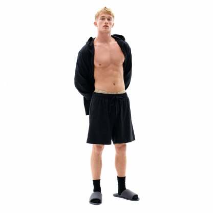 Kick back and relax in maximum comfort with these relaxed fit shorts. Made with a midweight, breathable stretch-cotton blend for a premium feel, these bottoms take lounging to the highest level. Features a soft-knit, encased elastic waist with adjustable drawstring and side welt pockets. Fits true to size for a relaxed fit.