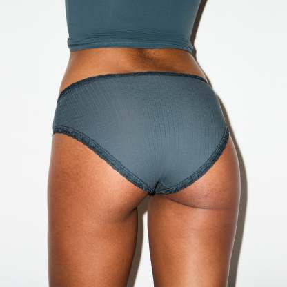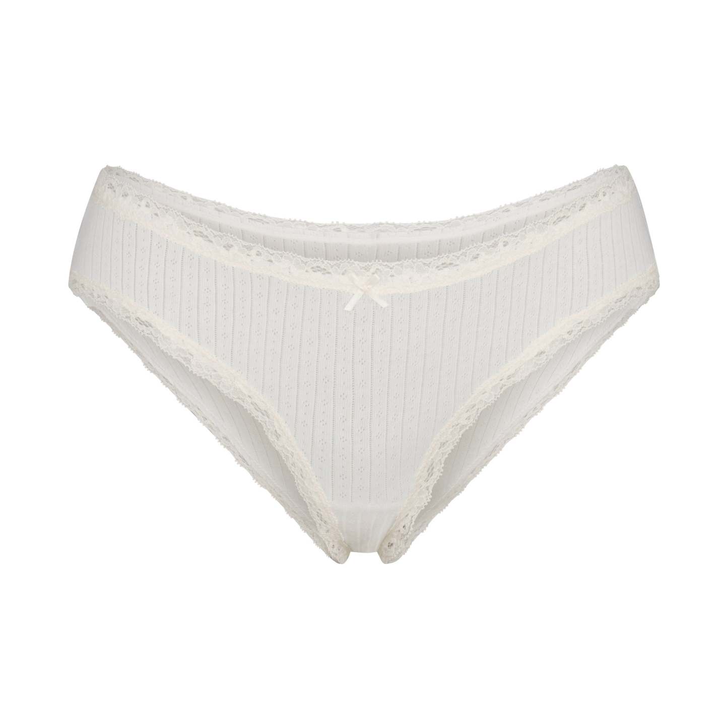Feminine details, lightweight comfort. This lace-trimmed brief is designed in our new lightweight cotton pointelle fabric with a center bow detail. Complete with a 100% cotton gusset and fits true to size.