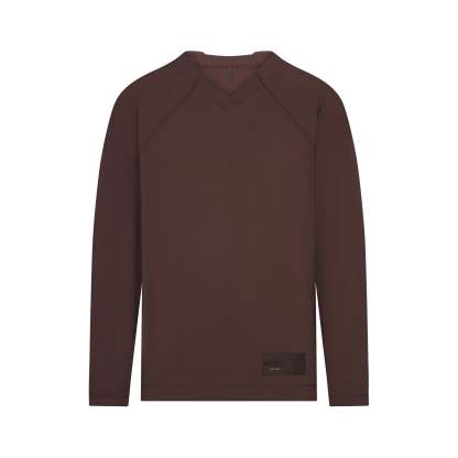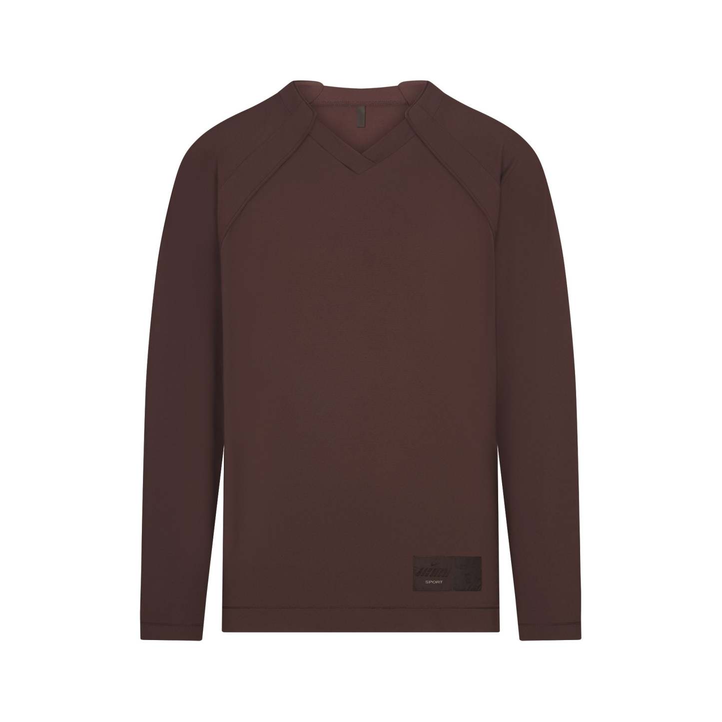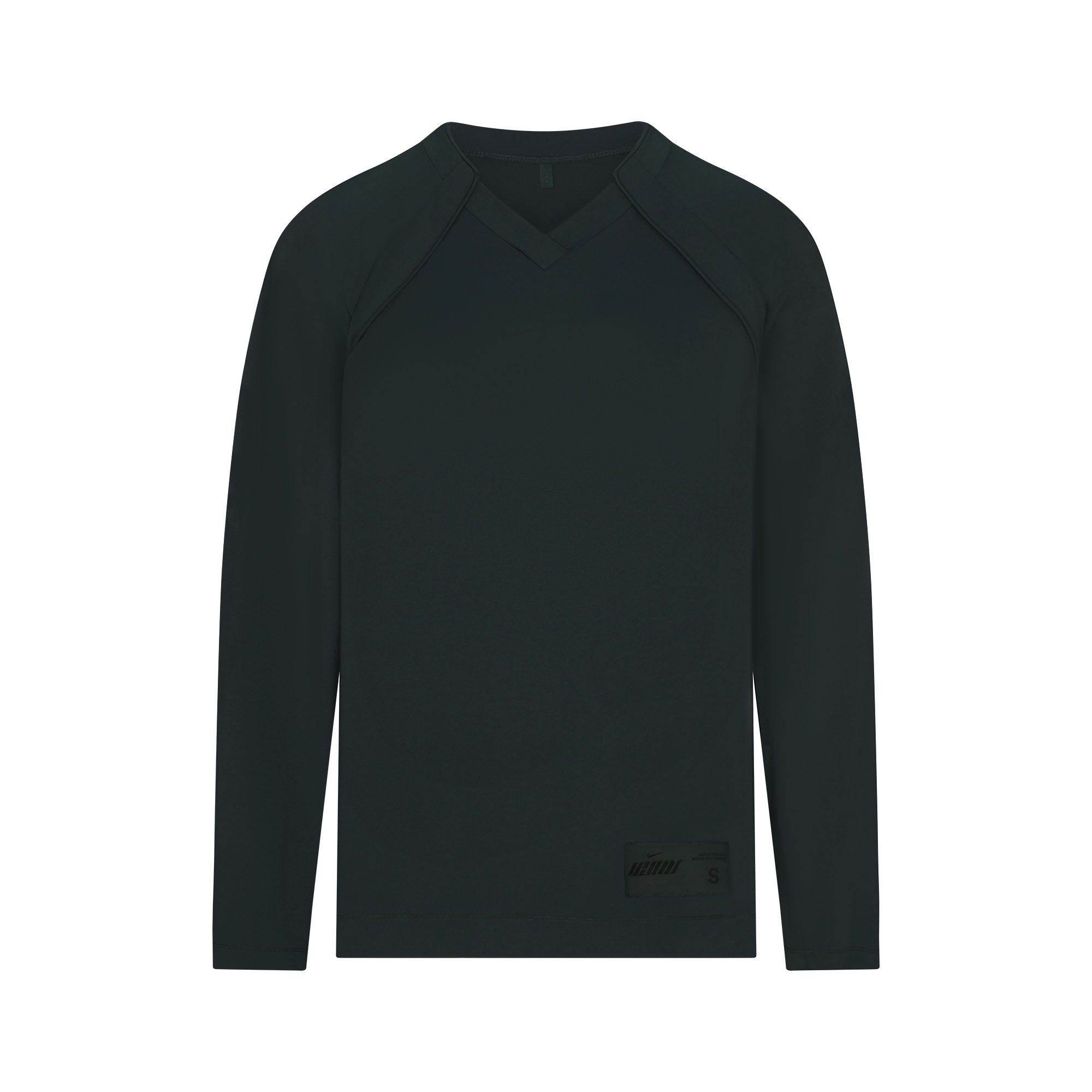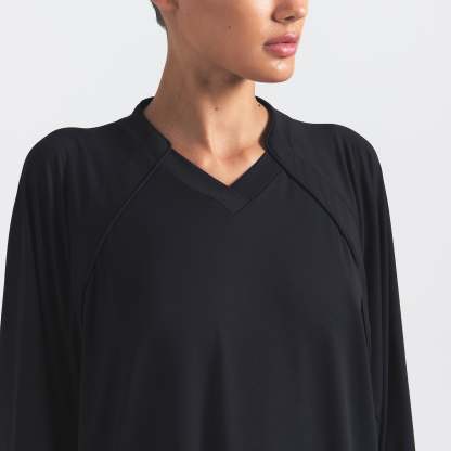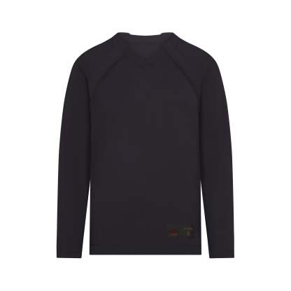 V-neck, Raglan long sleeves, Panel detail on front and sleeve, Woven logo patch on wearers left, Oversized fit