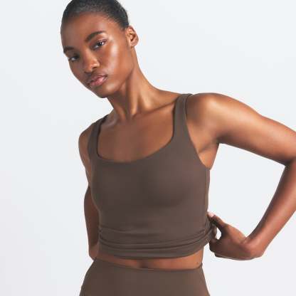 Designed with a modern square neckline and crafted from our sculpting Matte fabric, this tank includes slim built-in pads that adapt to your shape. With Nike Dri-Fit™ sweat-wicking, it’s ready for the studio and beyond.