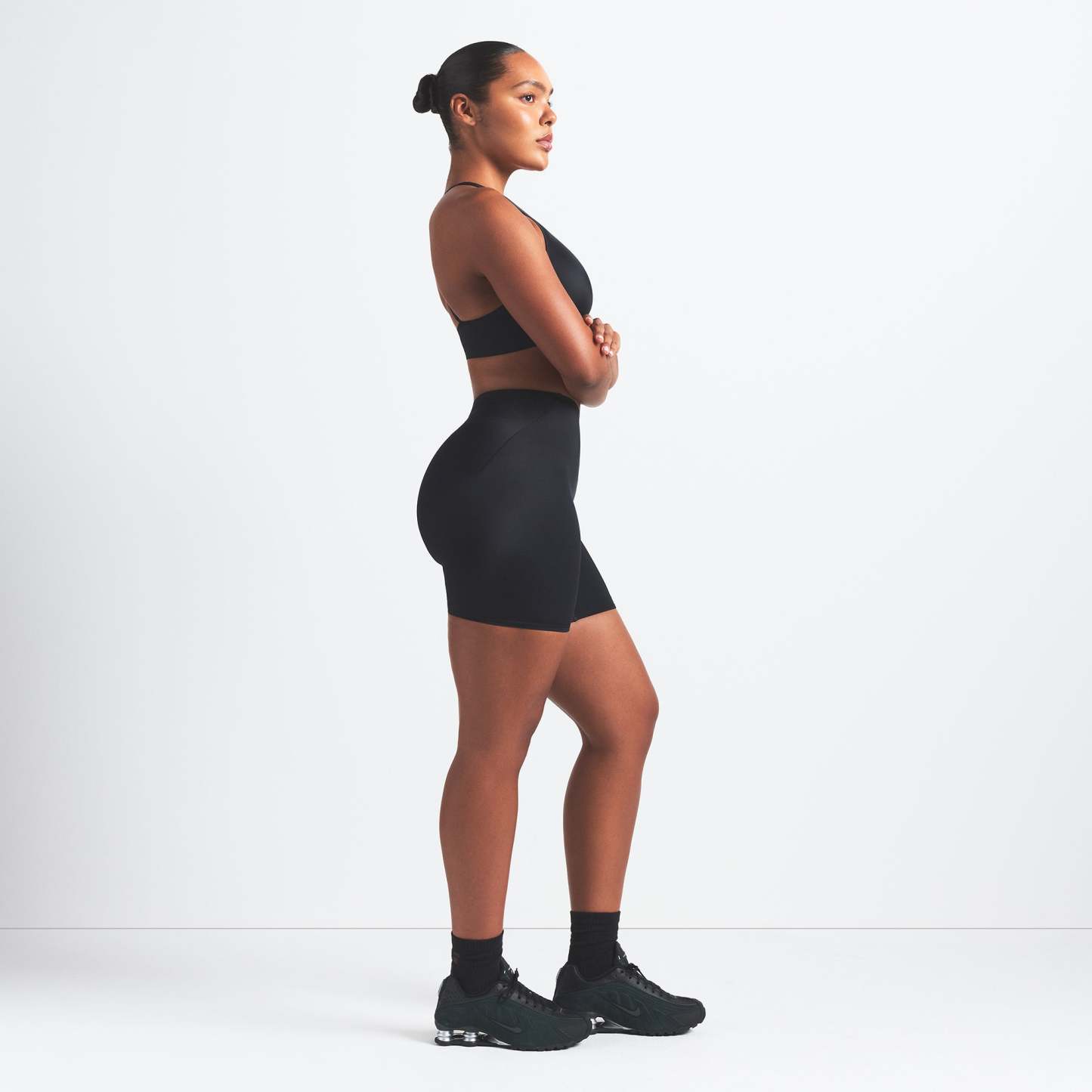 Designed to hug your curves, these biker shorts are made from our quick-drying Shine fabric for a sleek look with side darts and bold seam lines that define and flatter your shape. Features a bonded waistband for added support.