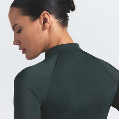 Sleek, lightweight, and quick-drying—this top is made from our Shine fabric with a subtle sheen and barely-there feel. A mock neck and long sleeves provide extra coverage for warm-ups, cool-downs, and everything in between.