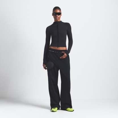 With a snug fit and soft, cotton-like feel, this zip-front jacket features a mock neck and moisture-wicking stretch for easy layering from studio to street.
