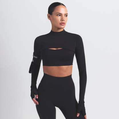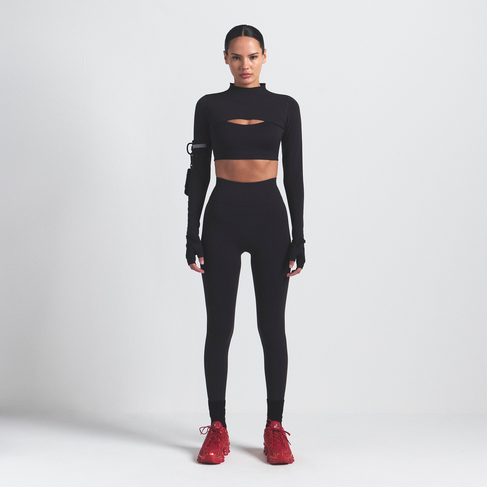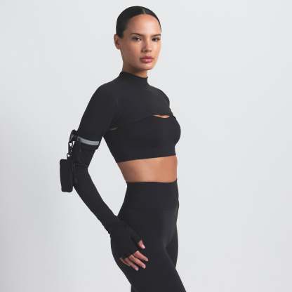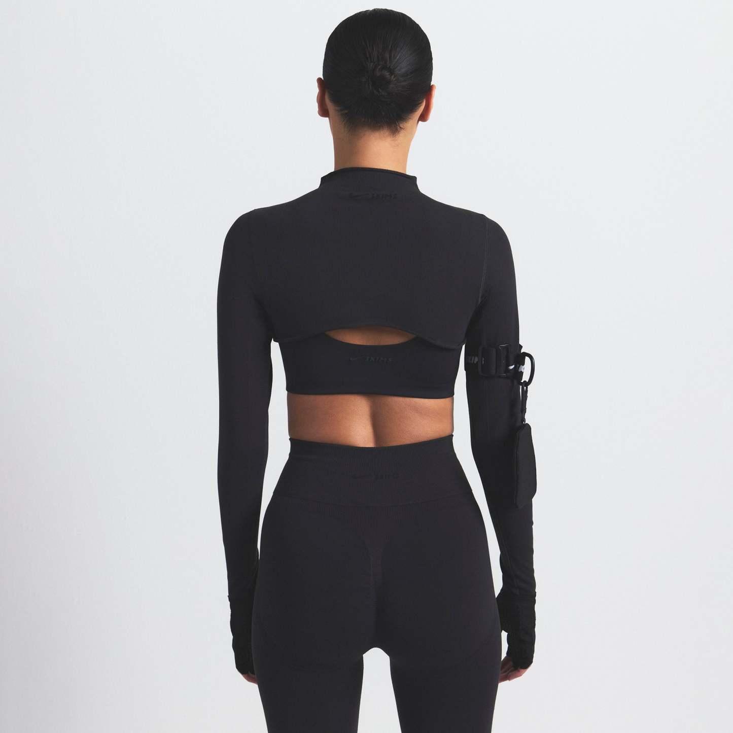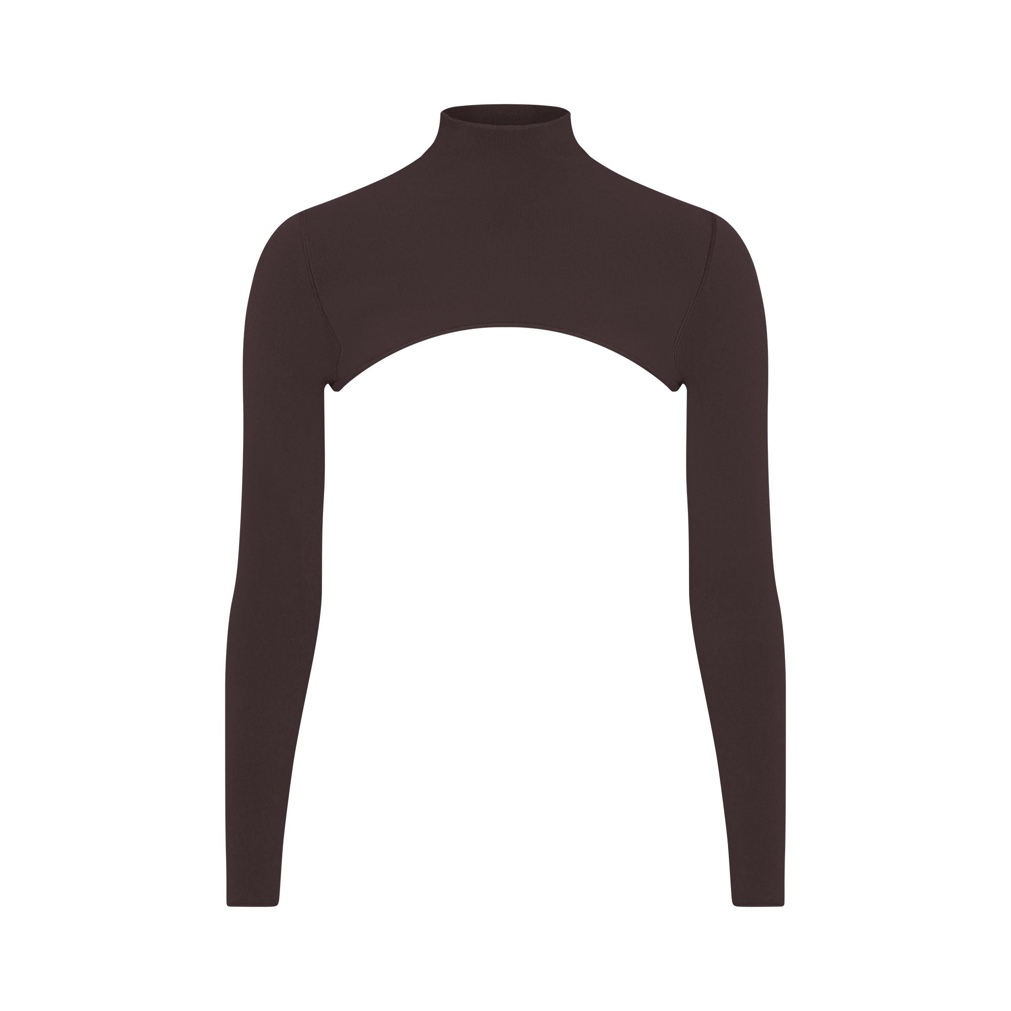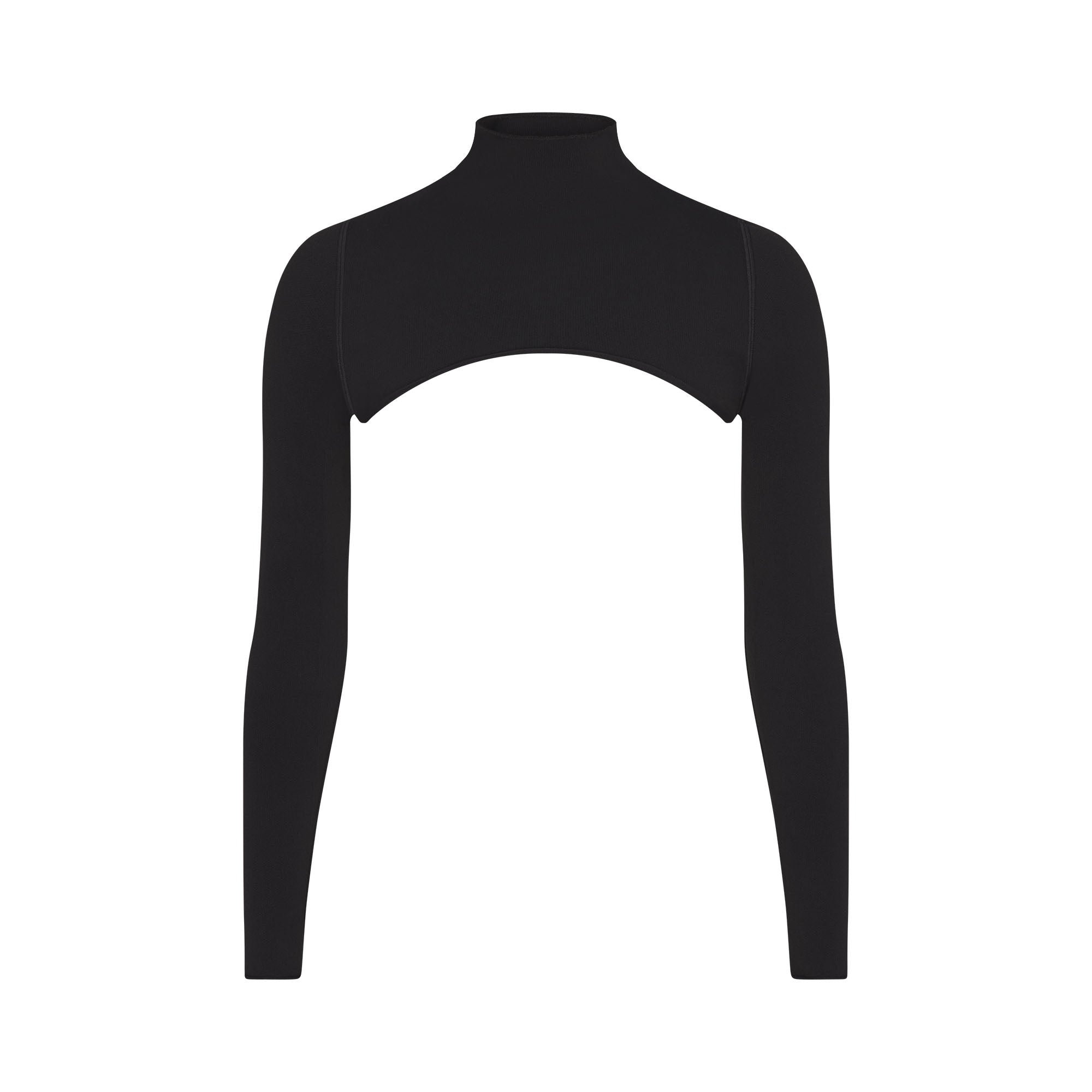 - Mock neck, Long sleeves, Logo at center back neck, Pullover style