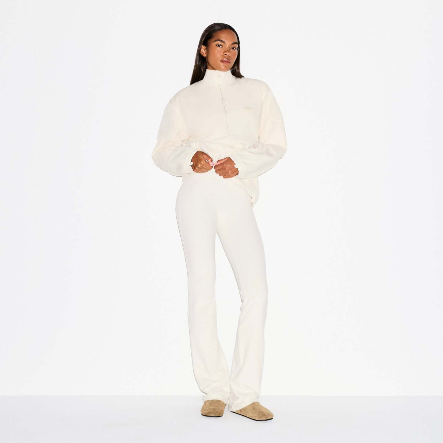 Winter warmth that goes anywhere. Slip into these high-rise fleece pants that hug your curves in our signature polar fleece fabric. This bootcut style has extra length that creates an edgy stacked effect at the ankle. Complete with a concealed back pocket at the waist, this will be your most-worn winter layer. Fits true to size.