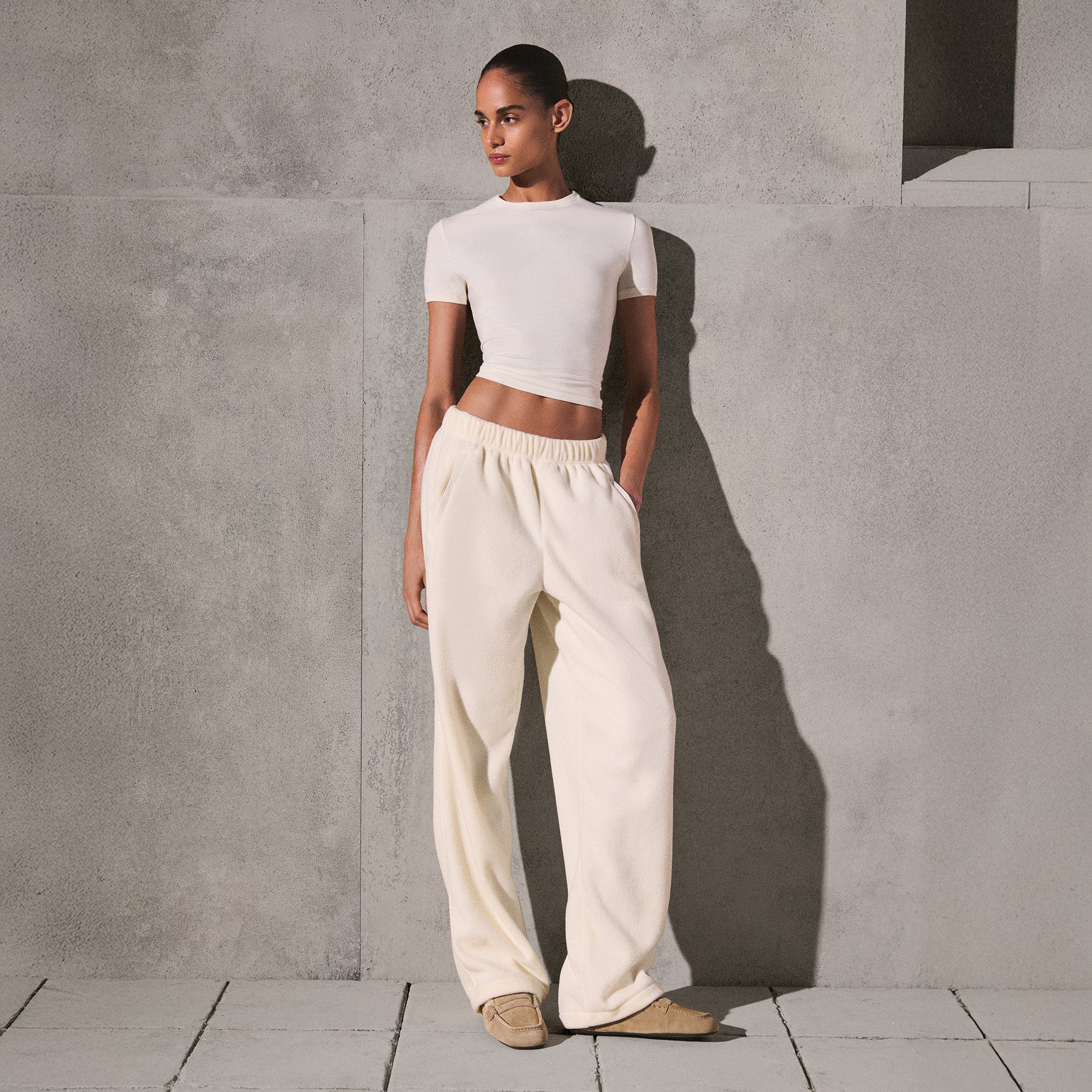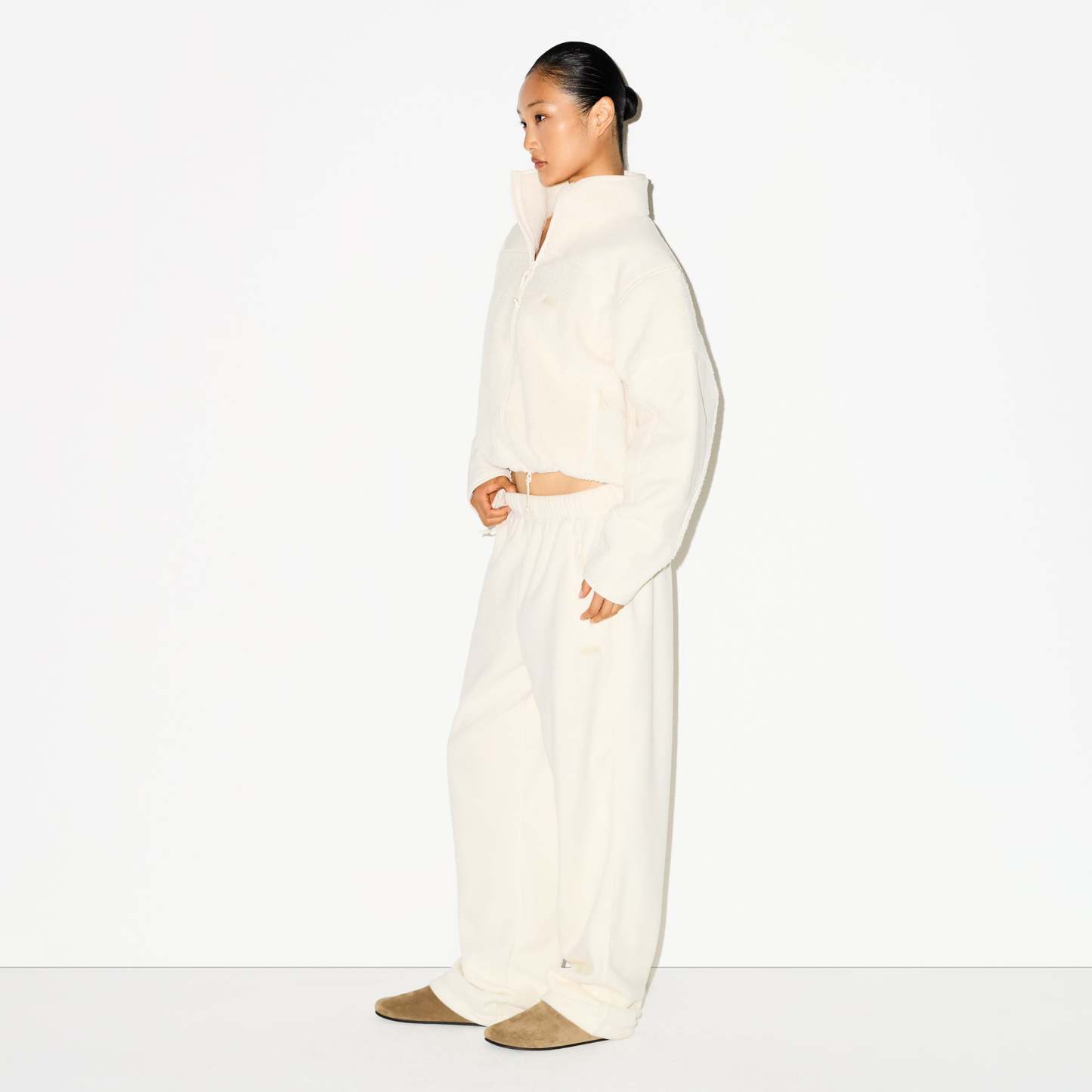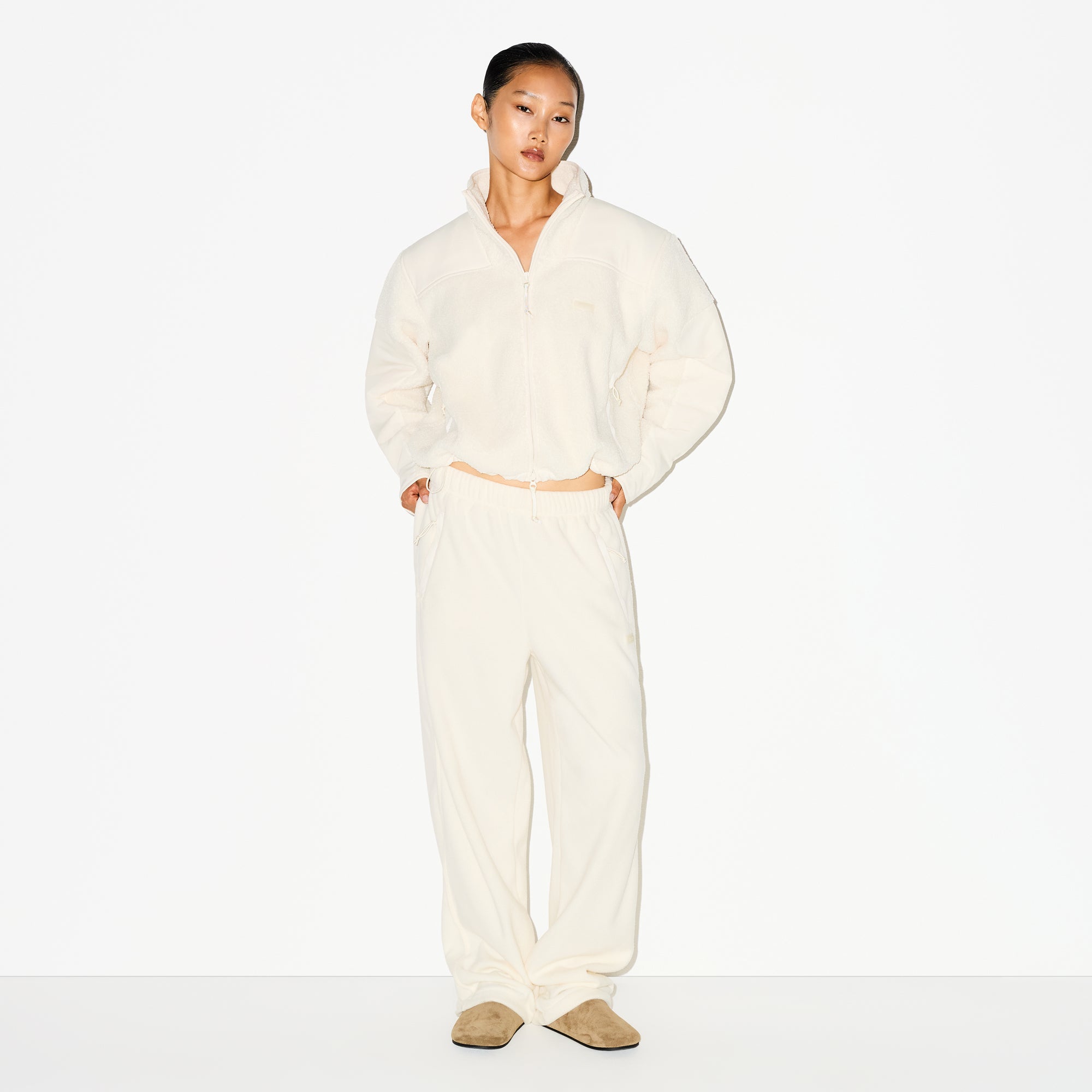 Warm, fuzzy, and essential. These ultra-plush fleece pants have an adjustable bungee waist and a straight-leg silhouette that’s made for effortless everyday styling. A silicone logo patch and zip pockets add to their sporty appeal.