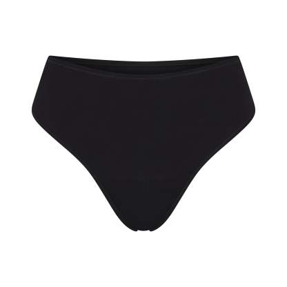 Leak-absorbent and super comfortable. Made in a soft and stretchy cotton, this mid-rise period thong keeps you feeling fresh all day long. Features a three-layer, moisture-wicking gusset that absorbs up to 2 tampons worth of liquid. Best for daily protection and light to medium flow days. Fits true to size.
