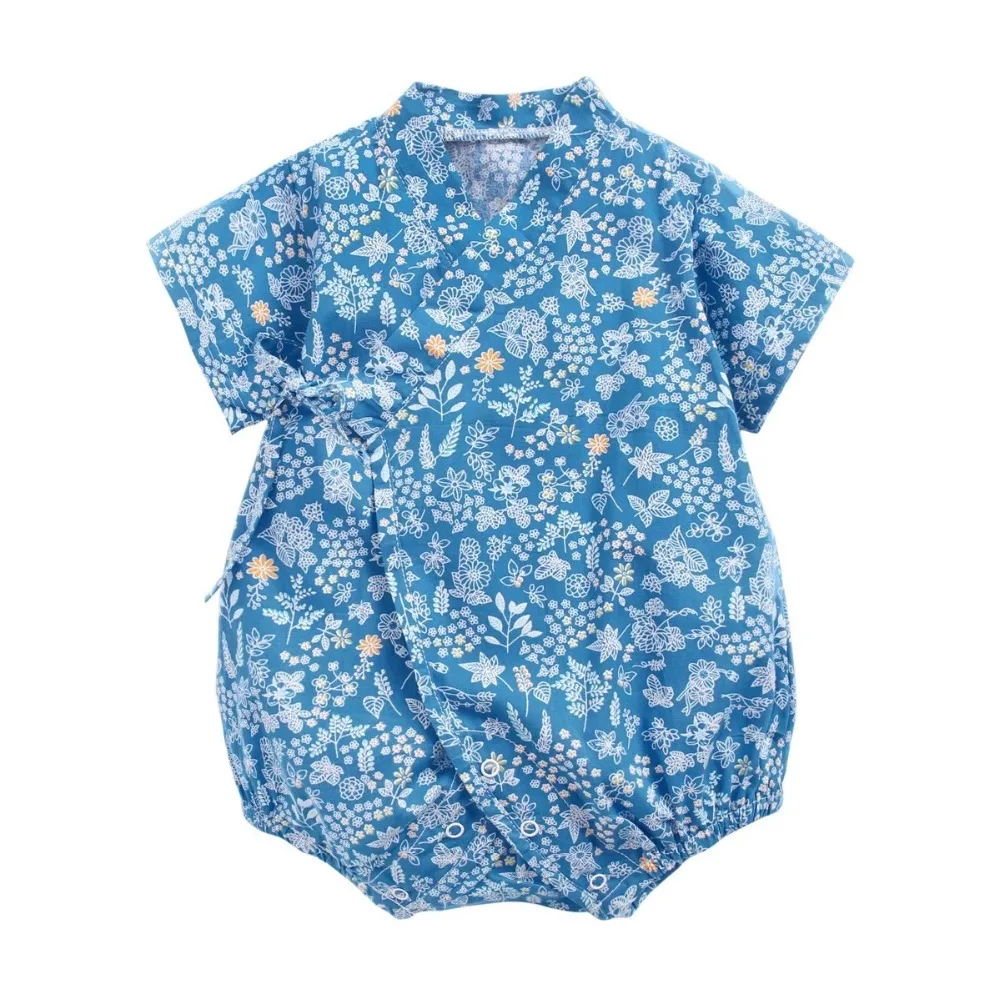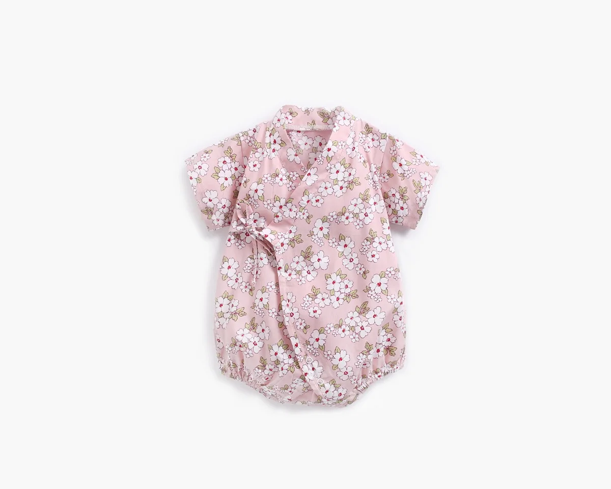 A lovely option for your little one. This kimono romper makes dressing your baby easy by avoiding having to pull garments over the baby's head. It is made of soft cotton and polyester materials to make your little one comfortable.