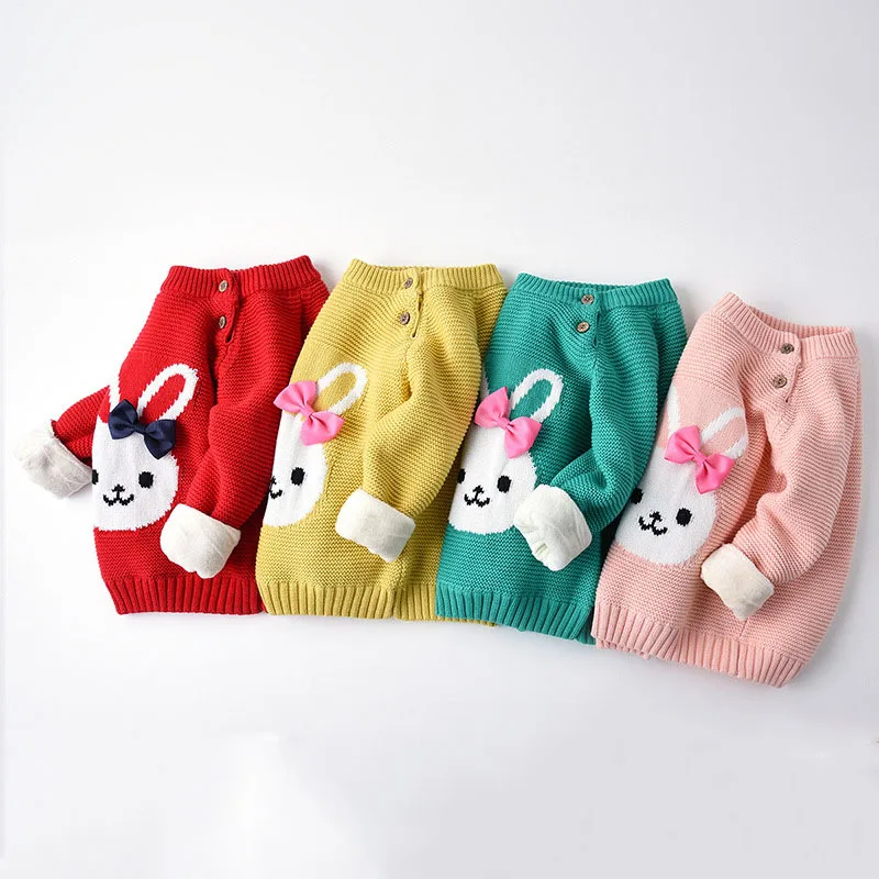 A lovely soft sweater for your little bunnies.  Featuring 2 shoulder closure buttons for a quick change. Embroidered cute little bunny with ribbon tie. It has an inner layer that will give a warm feeling during breezy weather. Pair back with denim jeans and boots to complete the look.