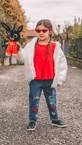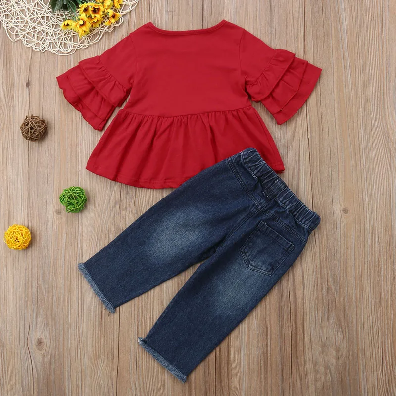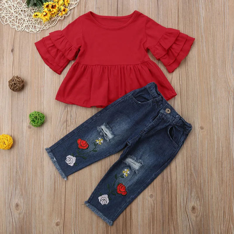 Get your little one fashionista ready for the summer fun with this super cute Tops Embroidery Denim Pants Outfit!
