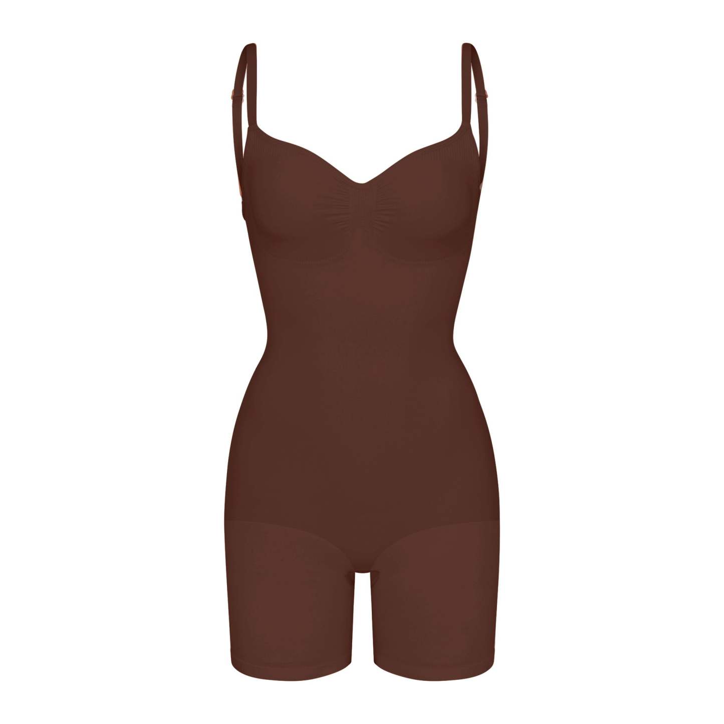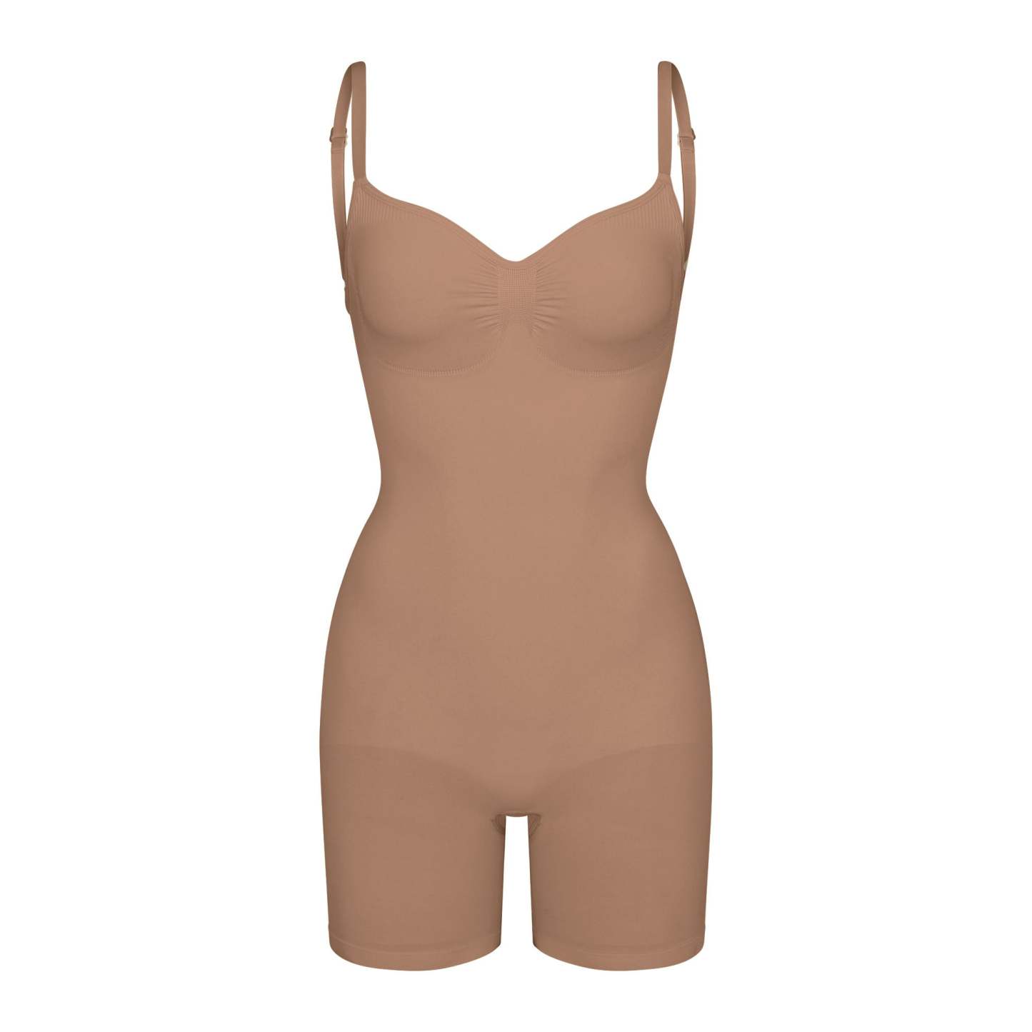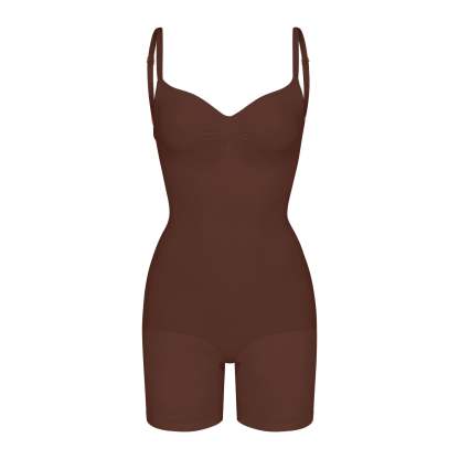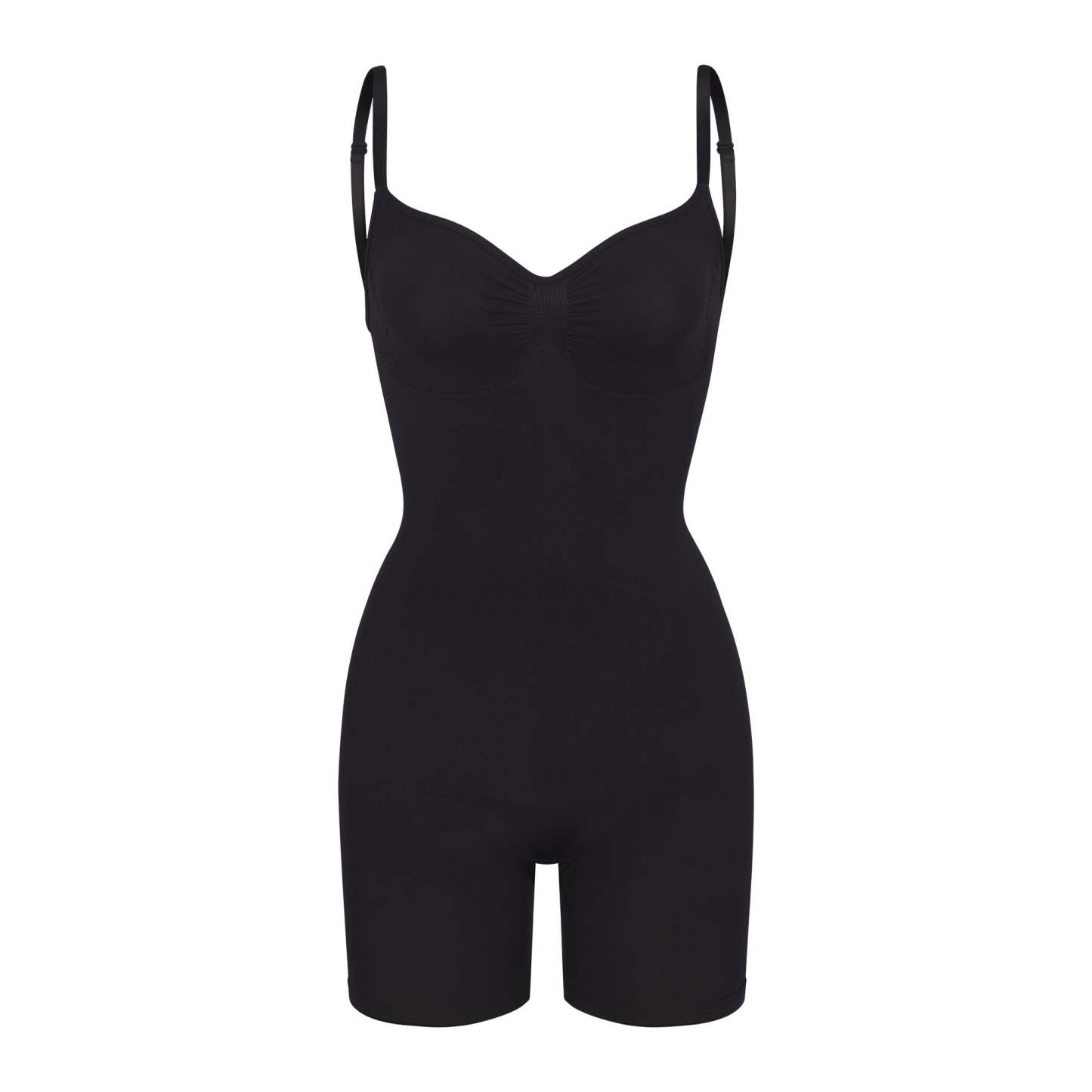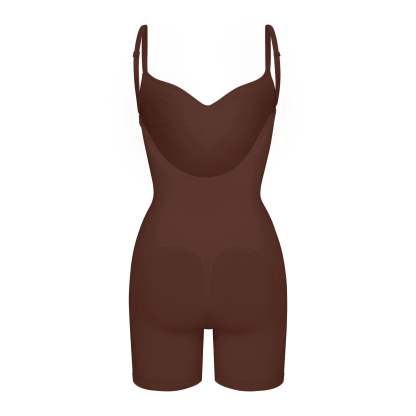 Scoop front neckline, Adjustable, convertible straps with hooks that can be worn as shoulder straps or cross-back, Strong compression along tummy, core and waist, Pockets at butt to lift and add definition, Open gusset, Low back style pairs well with low back dresses and tops