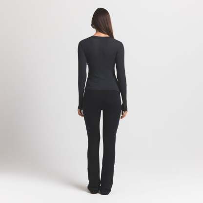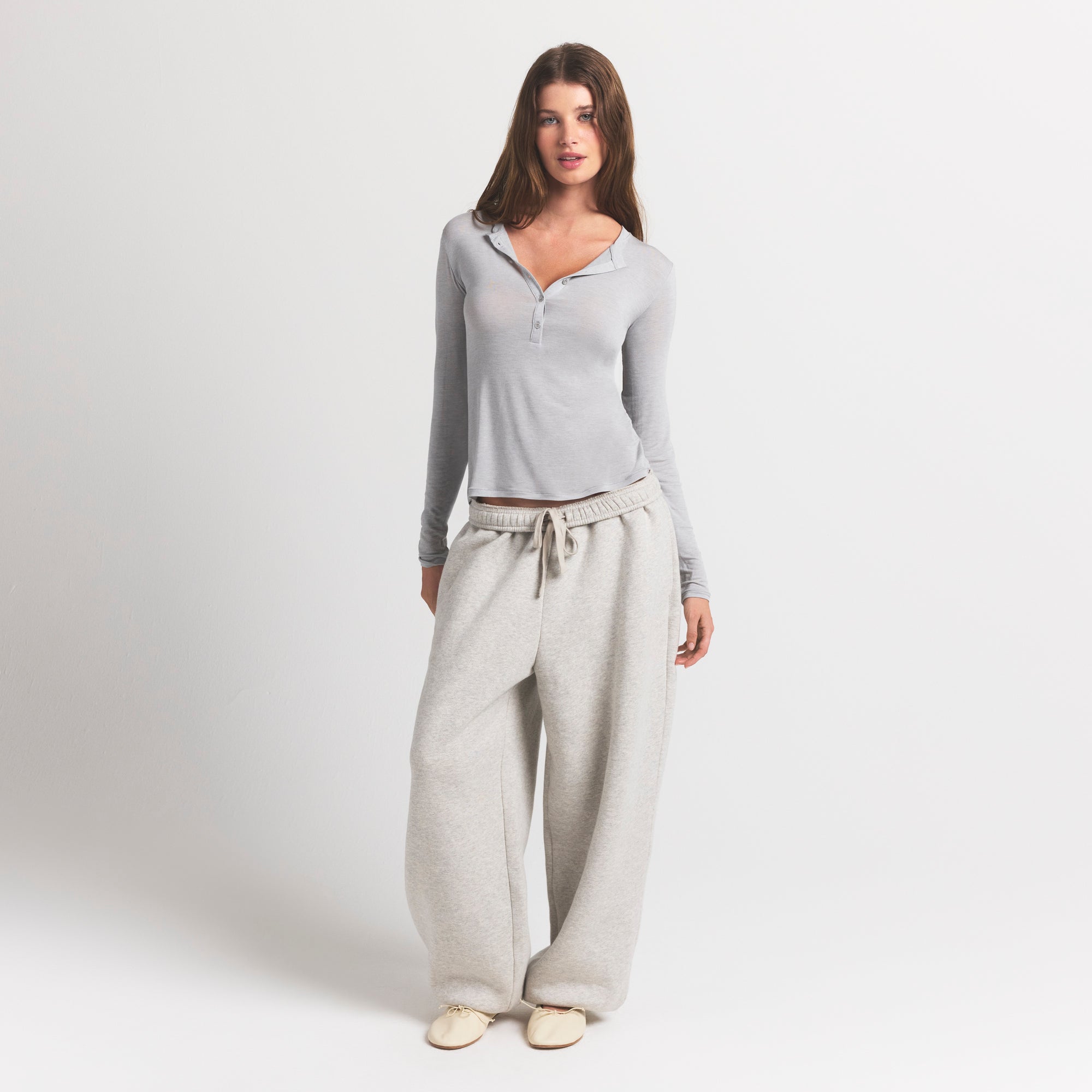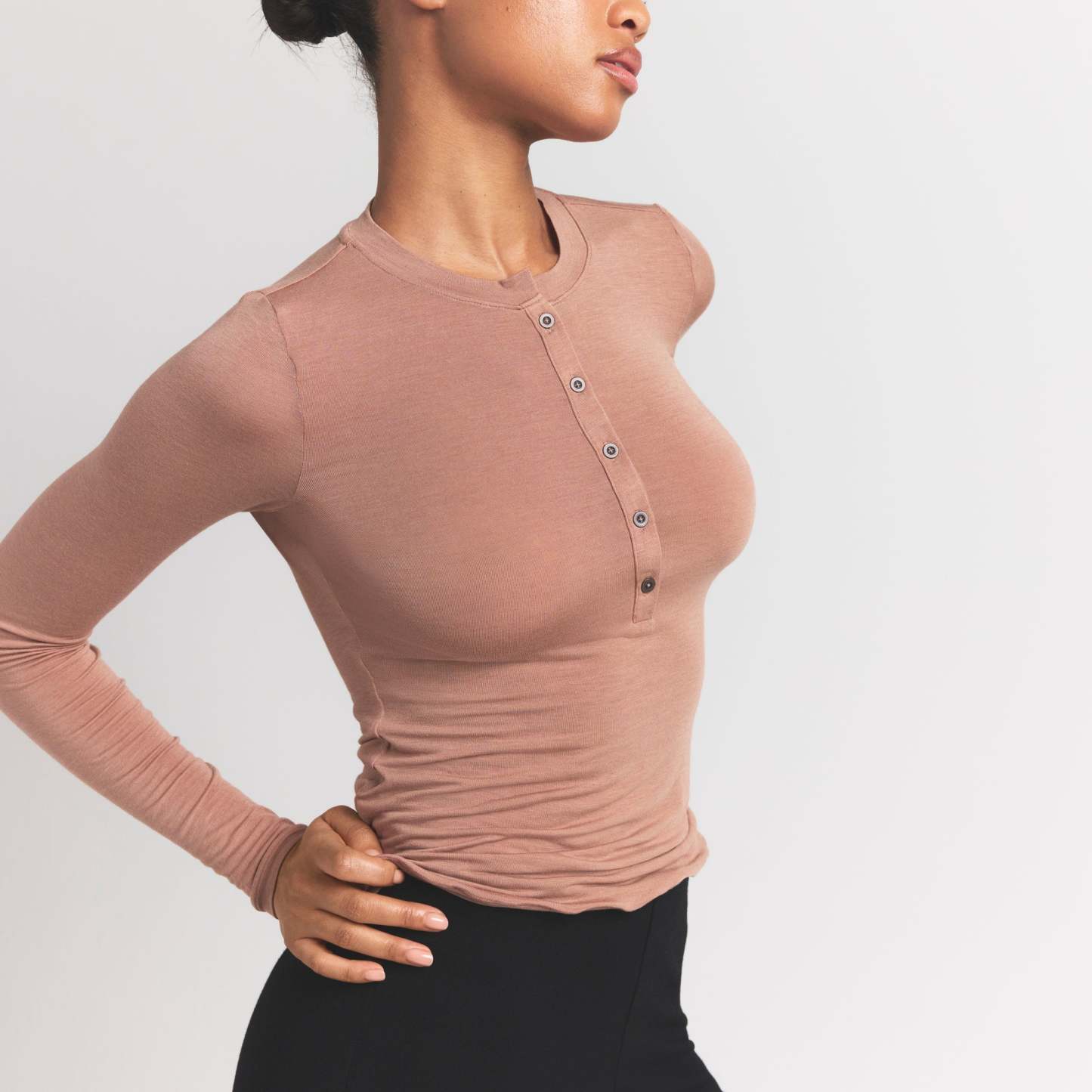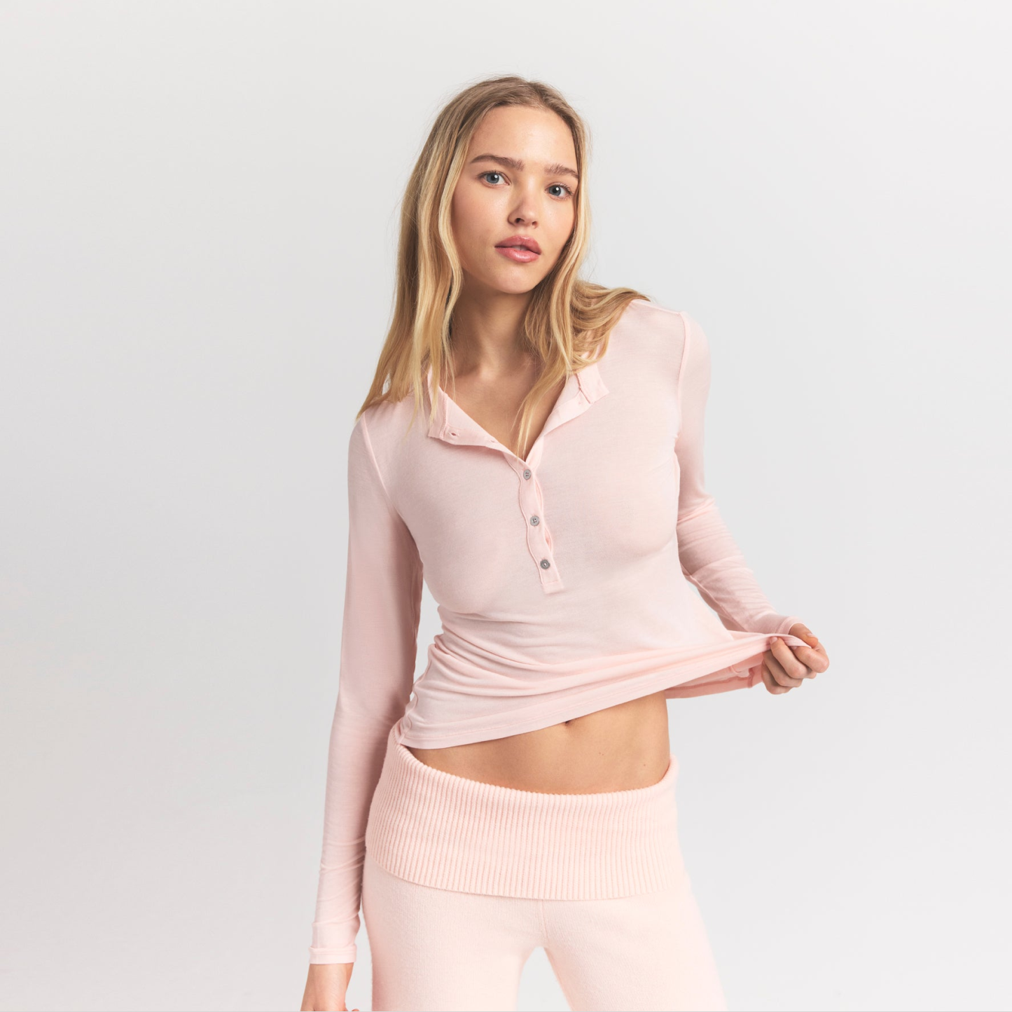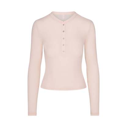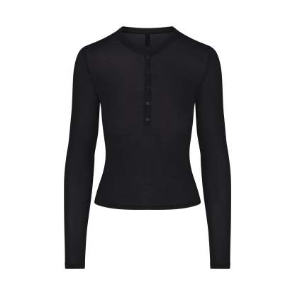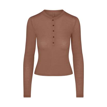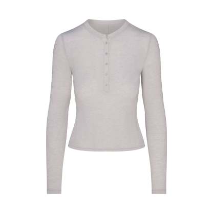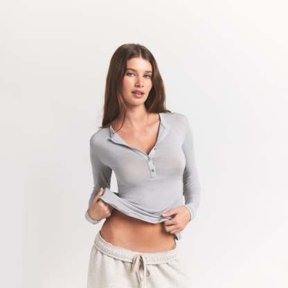 Your most elevated staple. This sheer crewneck henley is made from our super soft modal-cashmere blend and features an ultra-flattering fit.