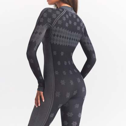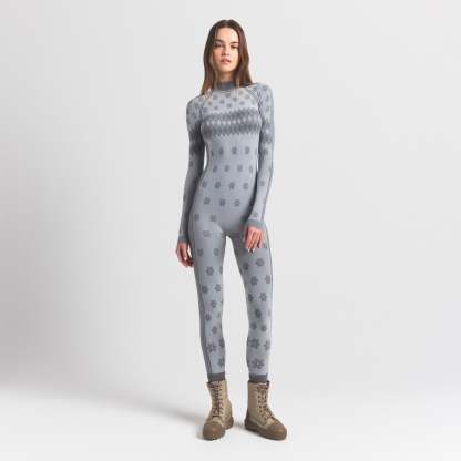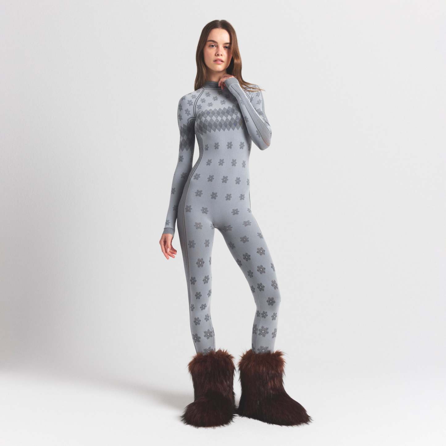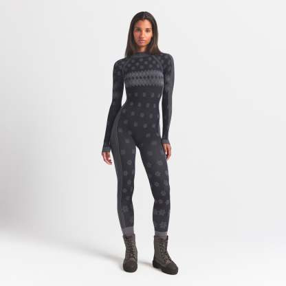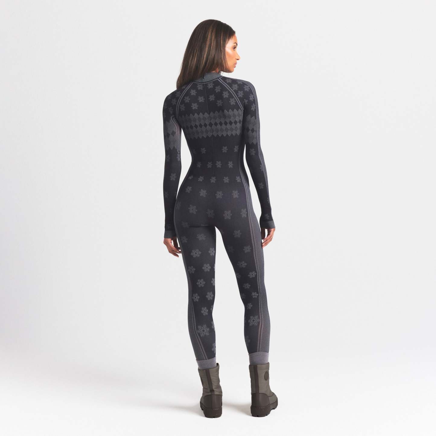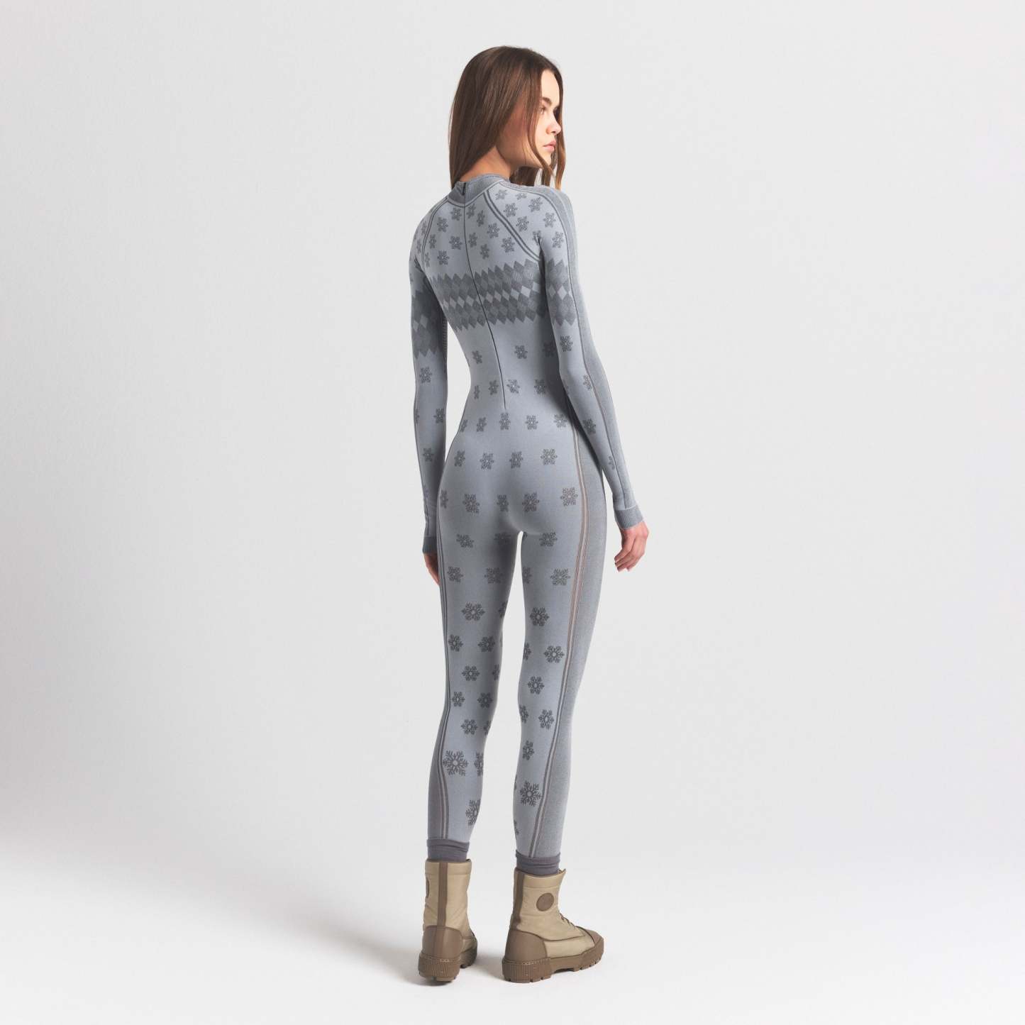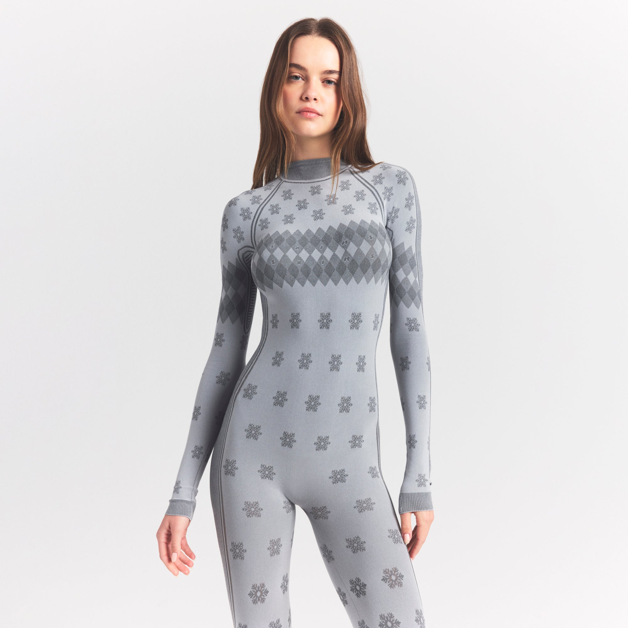 Sleek, seamless, and contouring from head to toe. With a timeless fair isle print and a body-hugging design, this turtleneck catsuit is guaranteed to heat things up on even the coldest of days. Featuring quick-drying and thermoregulating tech made to perform all winter long.