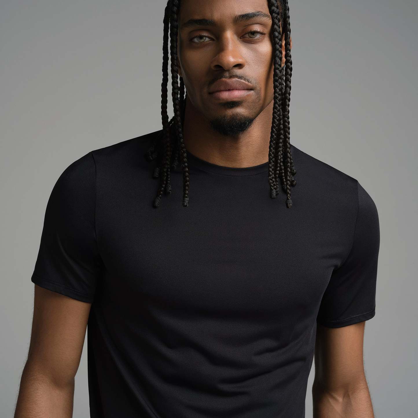 - 4-way ultra stretch material, Quick dry lightweight fabric, Crew neckline, Short sleeves, Slim fit