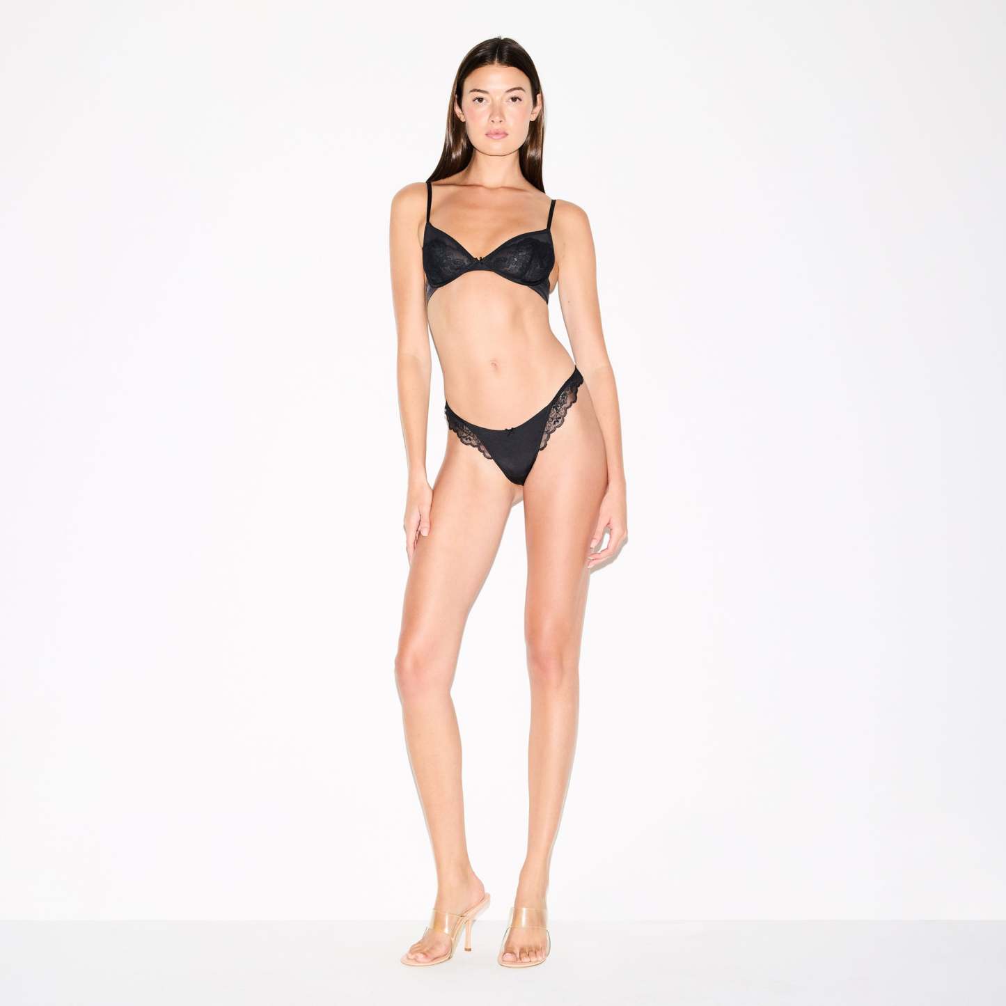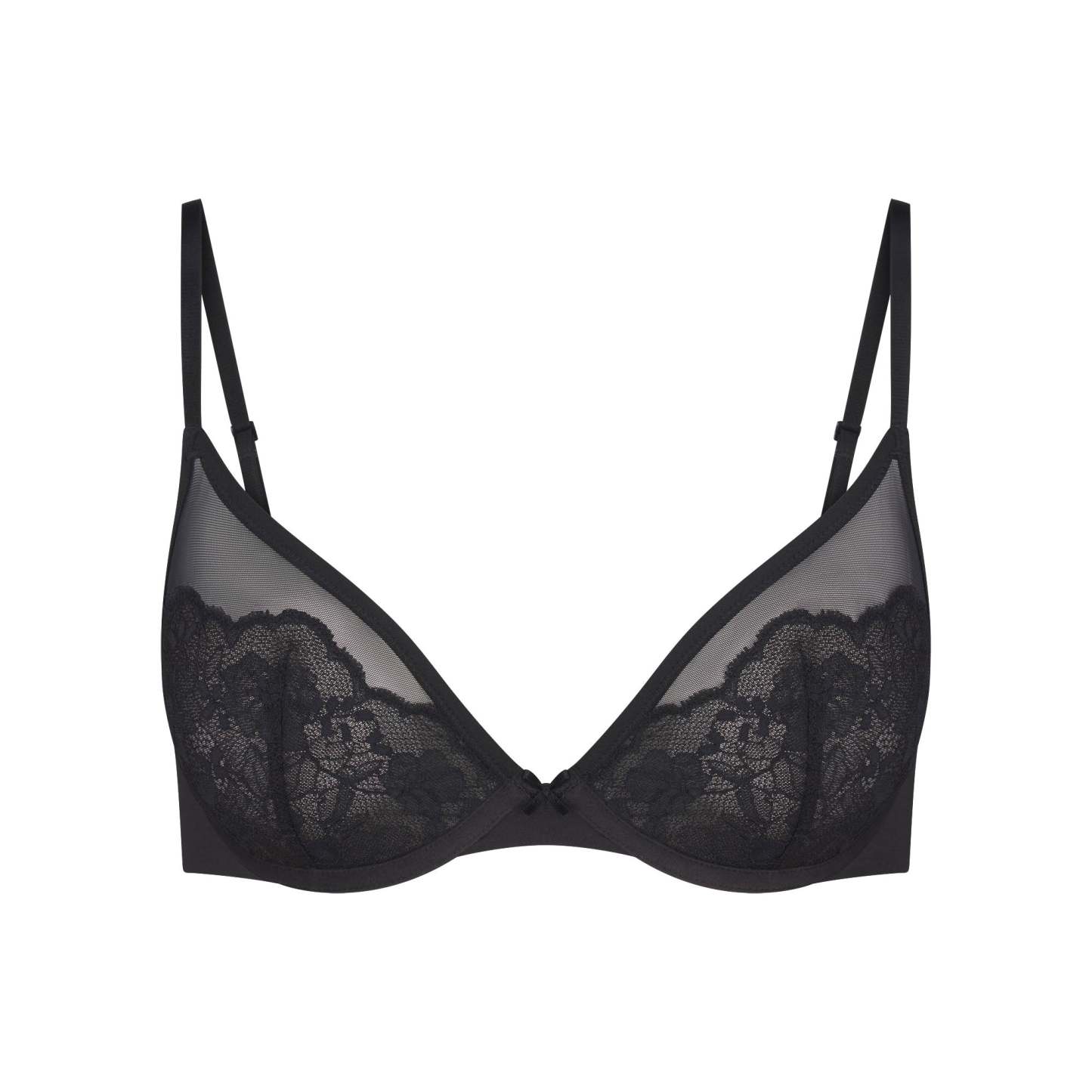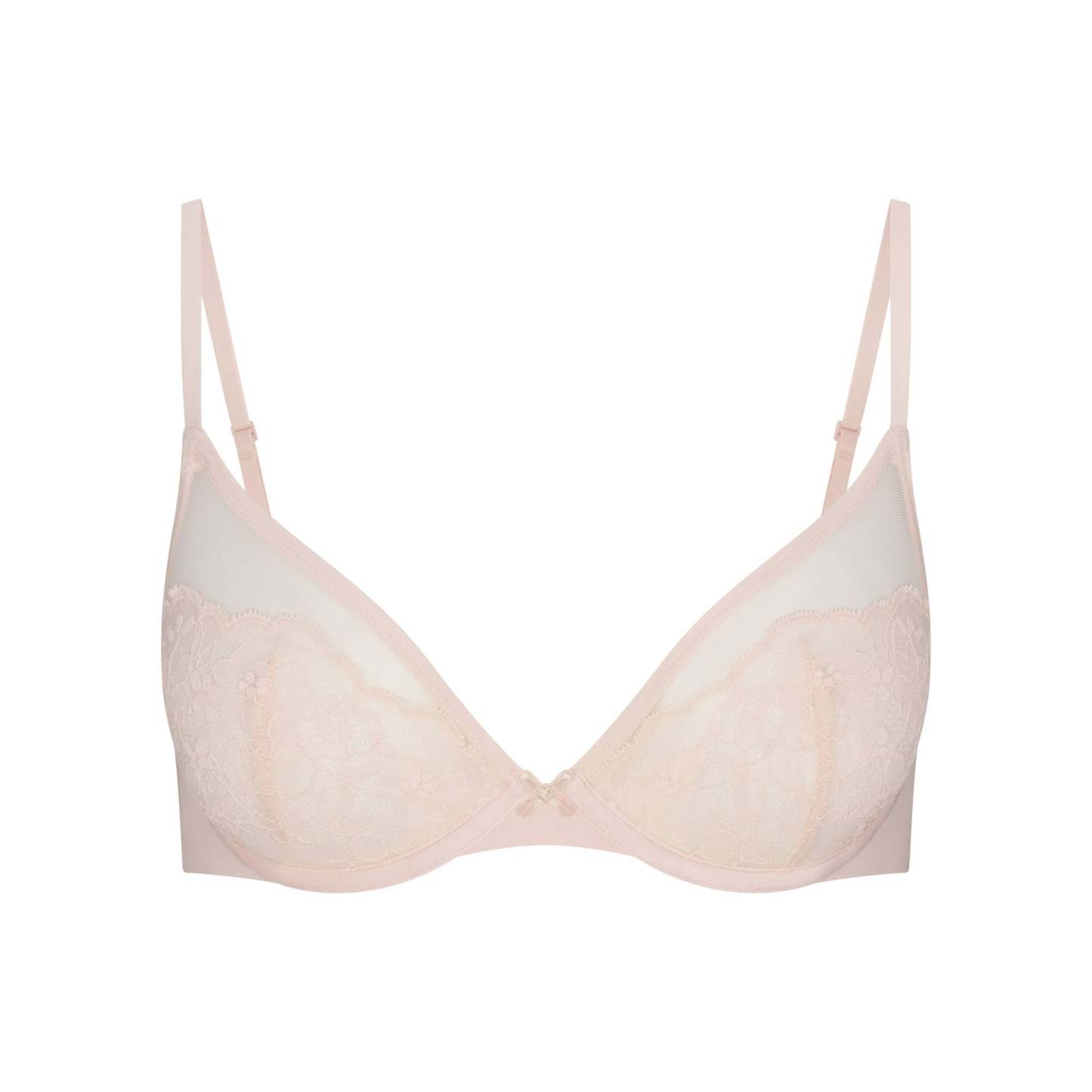 Soft, supportive, lacy. This demi bra features unlined lace cups and a bow detail at the center front for an ultra-feminine look. Designed with a smoothing microfiber wing and supportive underwire. Complete with adjustable, convertible straps and a hook and eye back closure. Fits true to your skithtms bra size.