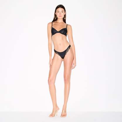 - Unlined demi mesh and lace cups, Bow at center front gore, Underwire for support, Convertible adjustable straps, Smoothing micro fiber wing, Hook and eye back closure