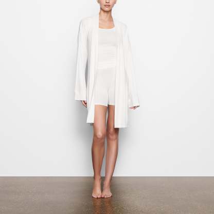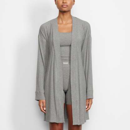 Perfect for lounging and layering over sleepwear, the Soft Lounge Robe is composed of super-soft modal ribbed fabric that drapes effortlessly in all the right places. This short robe features an adjustable self-tie belt and functional side pocket at inseam.