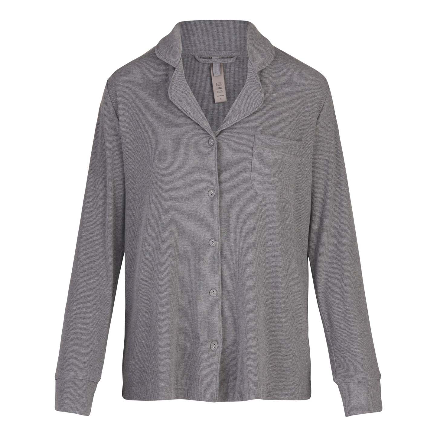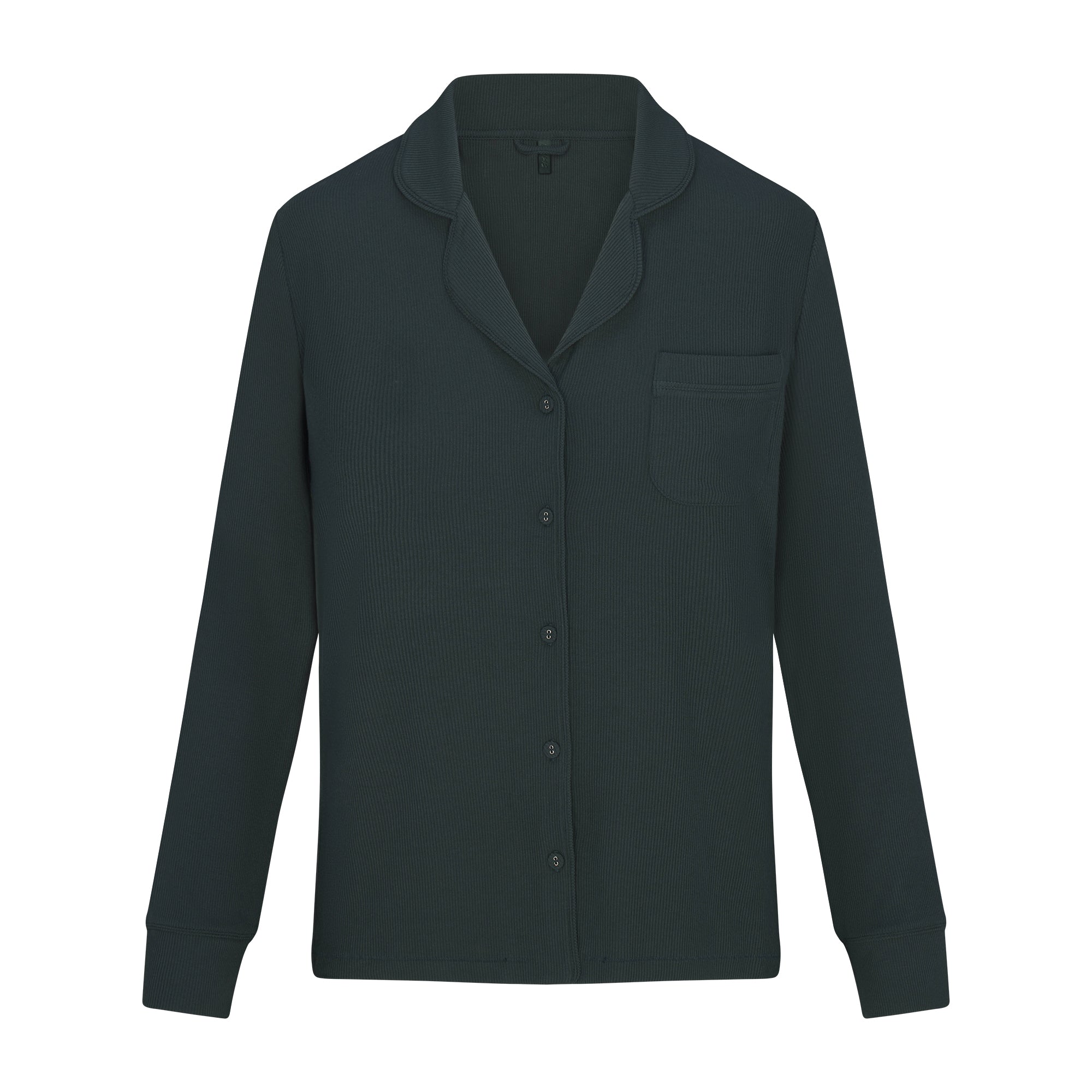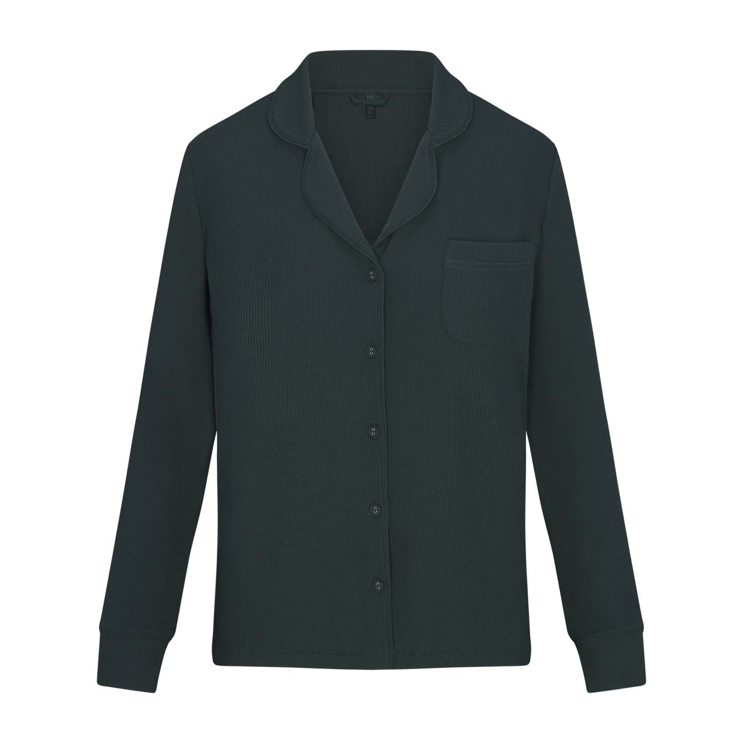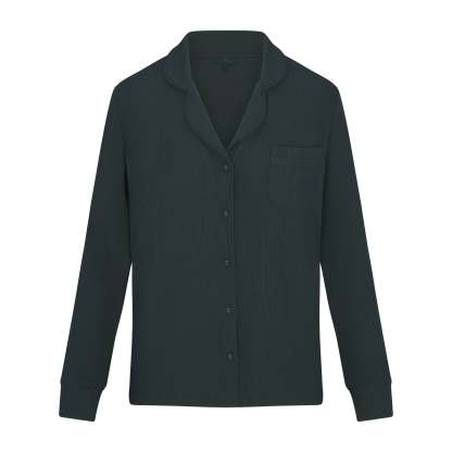 Classic Menswear inspired sleep top, Front Button Closure, Chest patch pocket, Locker loops for ease hanging on hooks, Ribbed fabric detail