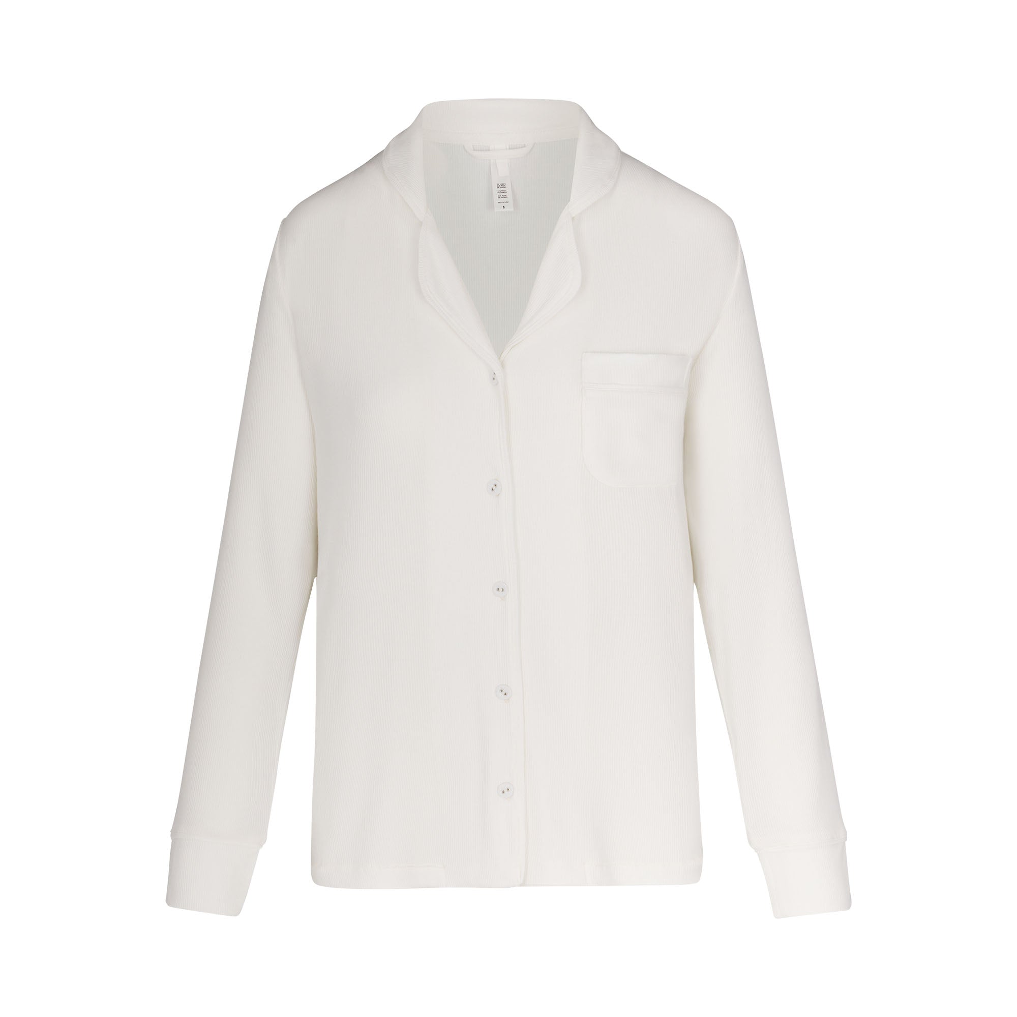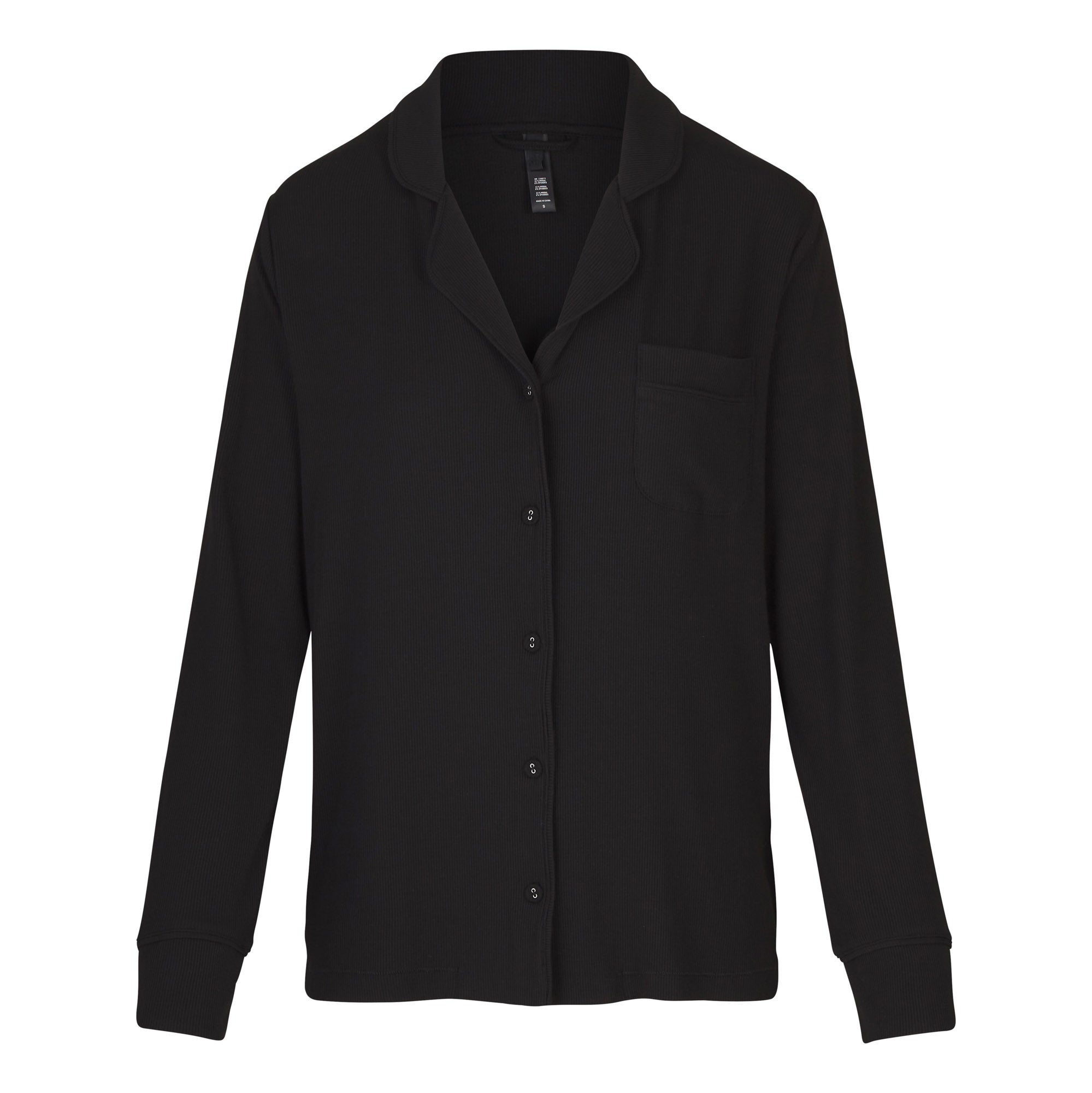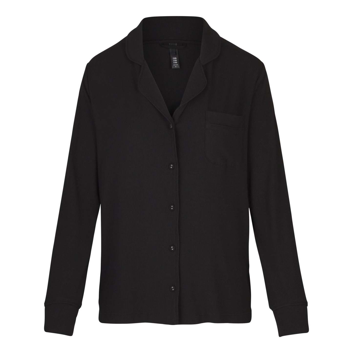 Classic Menswear inspired sleep top, Front Button Closure, Chest patch pocket, Locker loops for ease hanging on hooks, Ribbed fabric detail