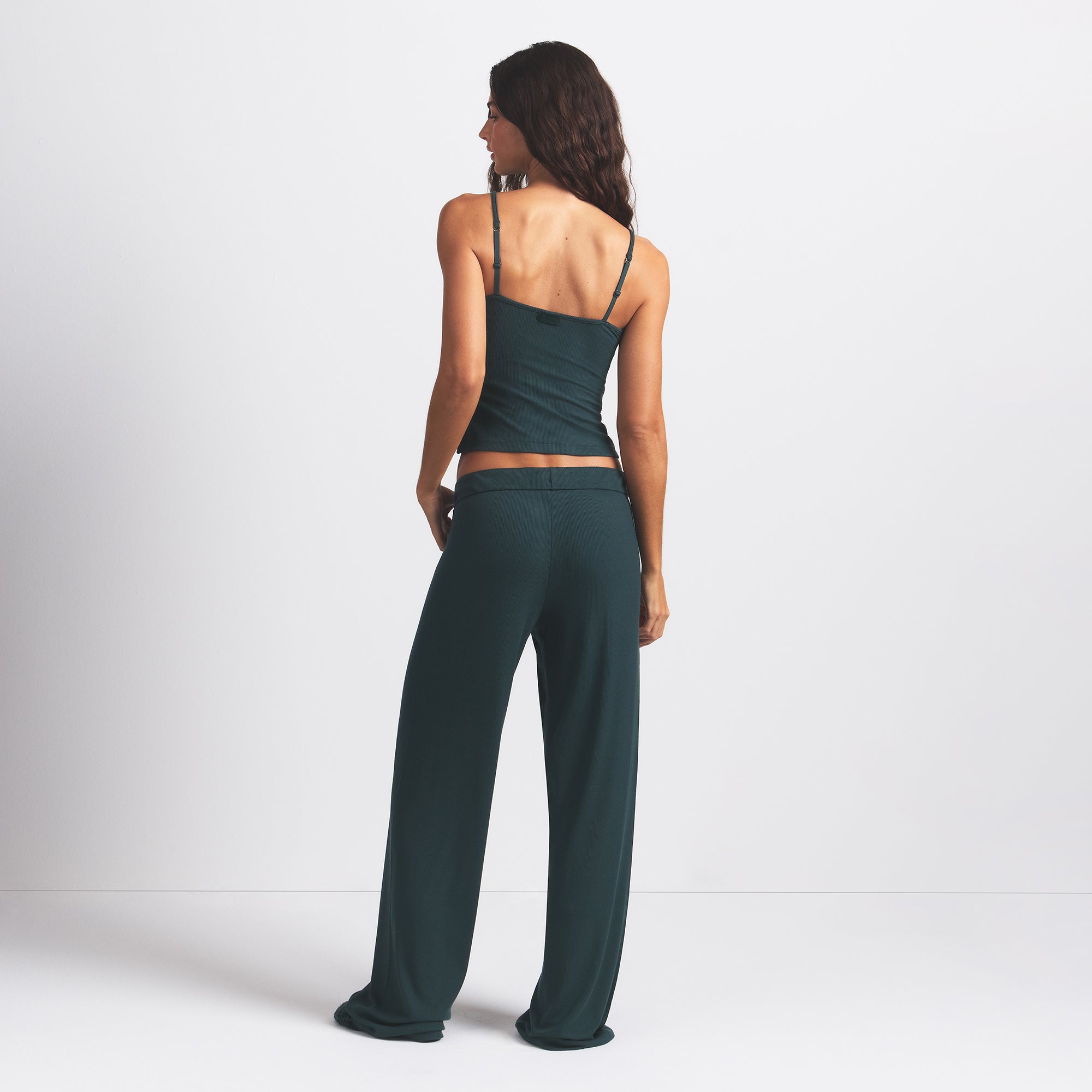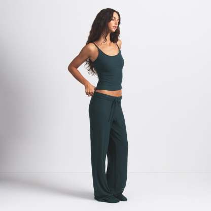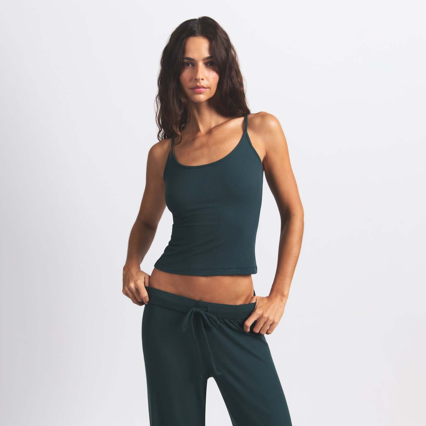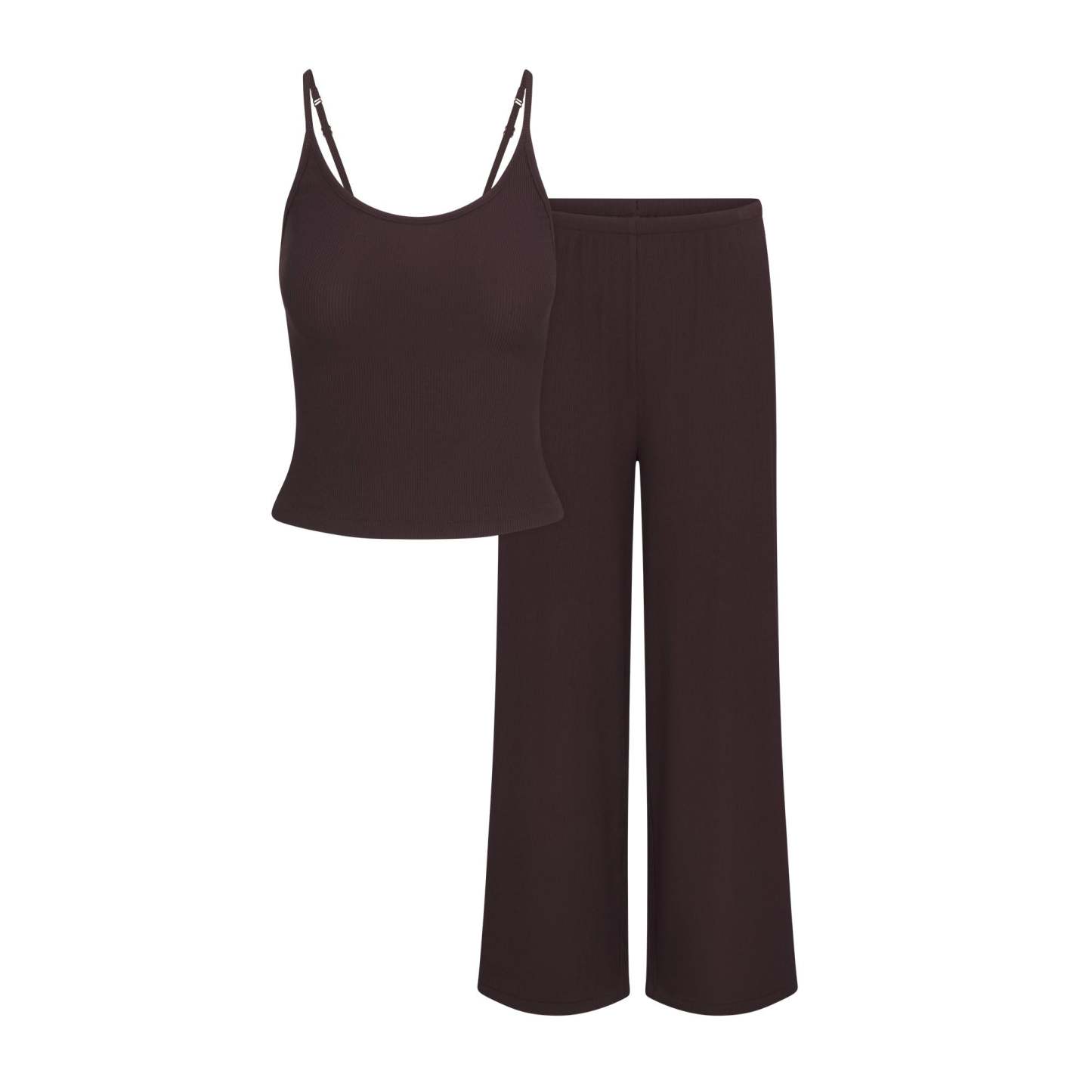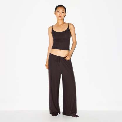 Dream in comfort. Made with our ultra-soft modal ribbed fabric, this sleep set includes a relaxed tank with a scoop neckline, adjustable straps, and skithtms logo detail at the center back neck. Features a straight leg pant with a soft knit elastic waistband and interior adjustable drawstring. Fits true to size.
