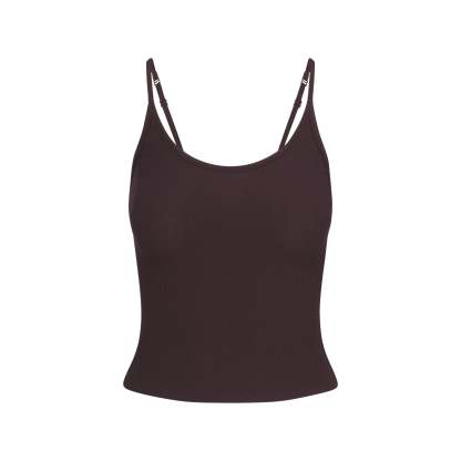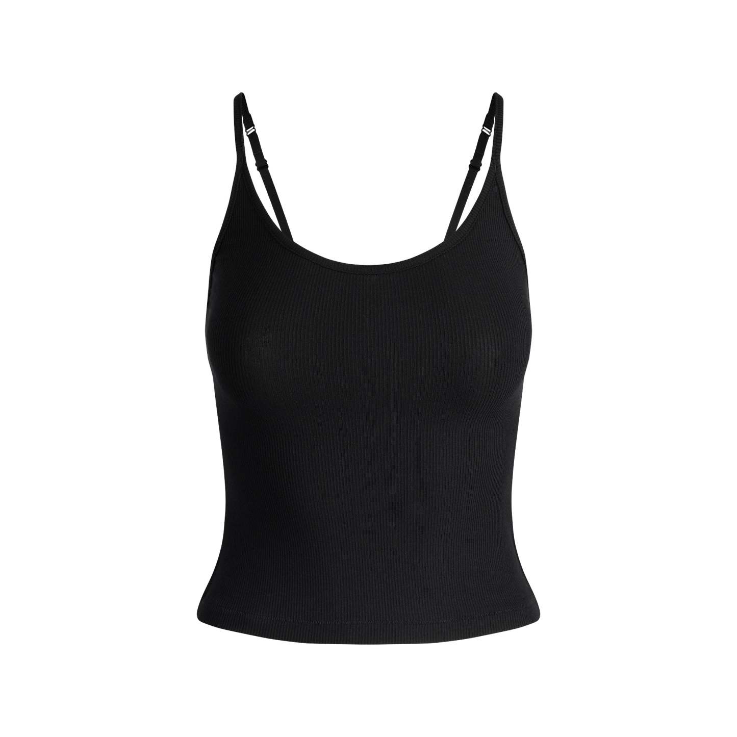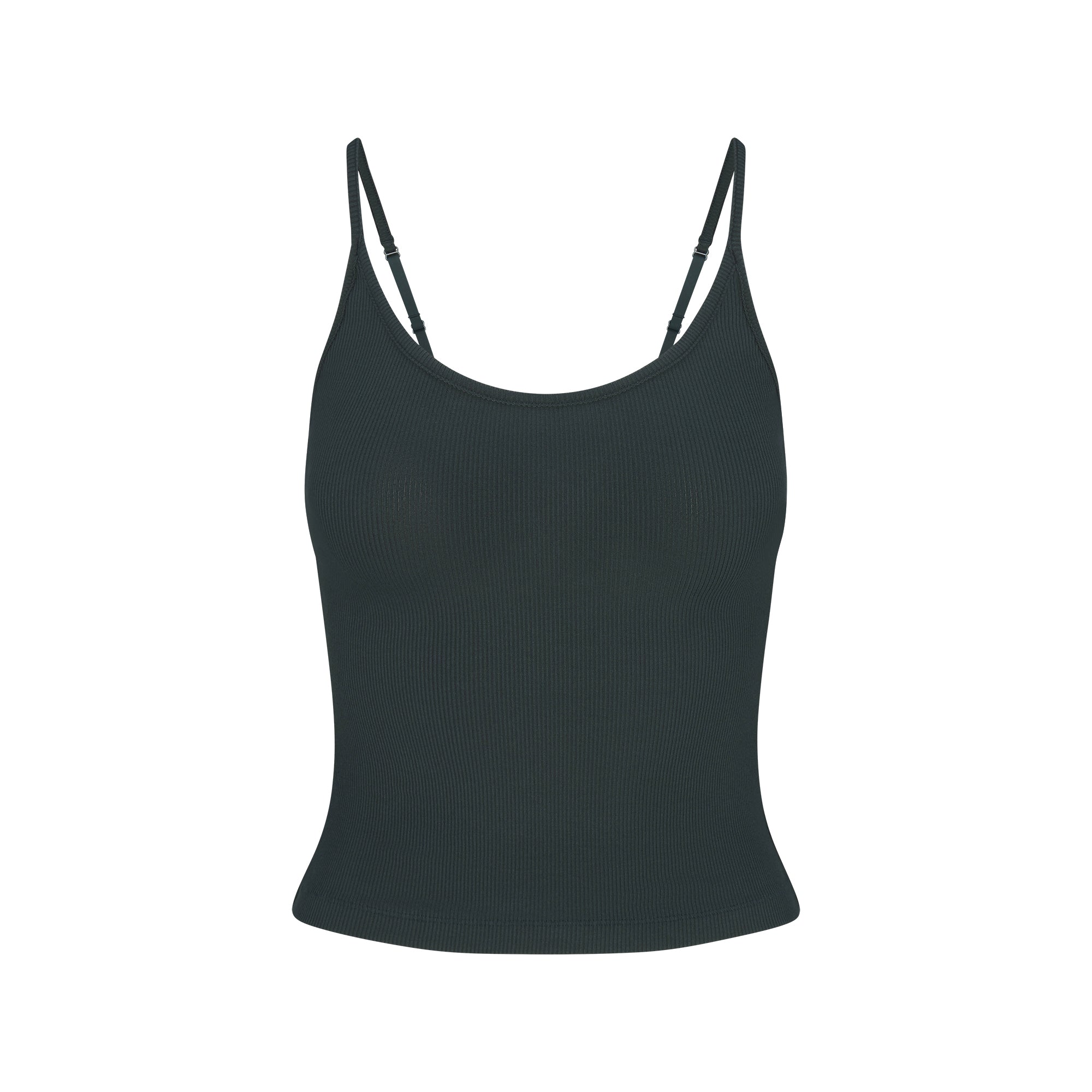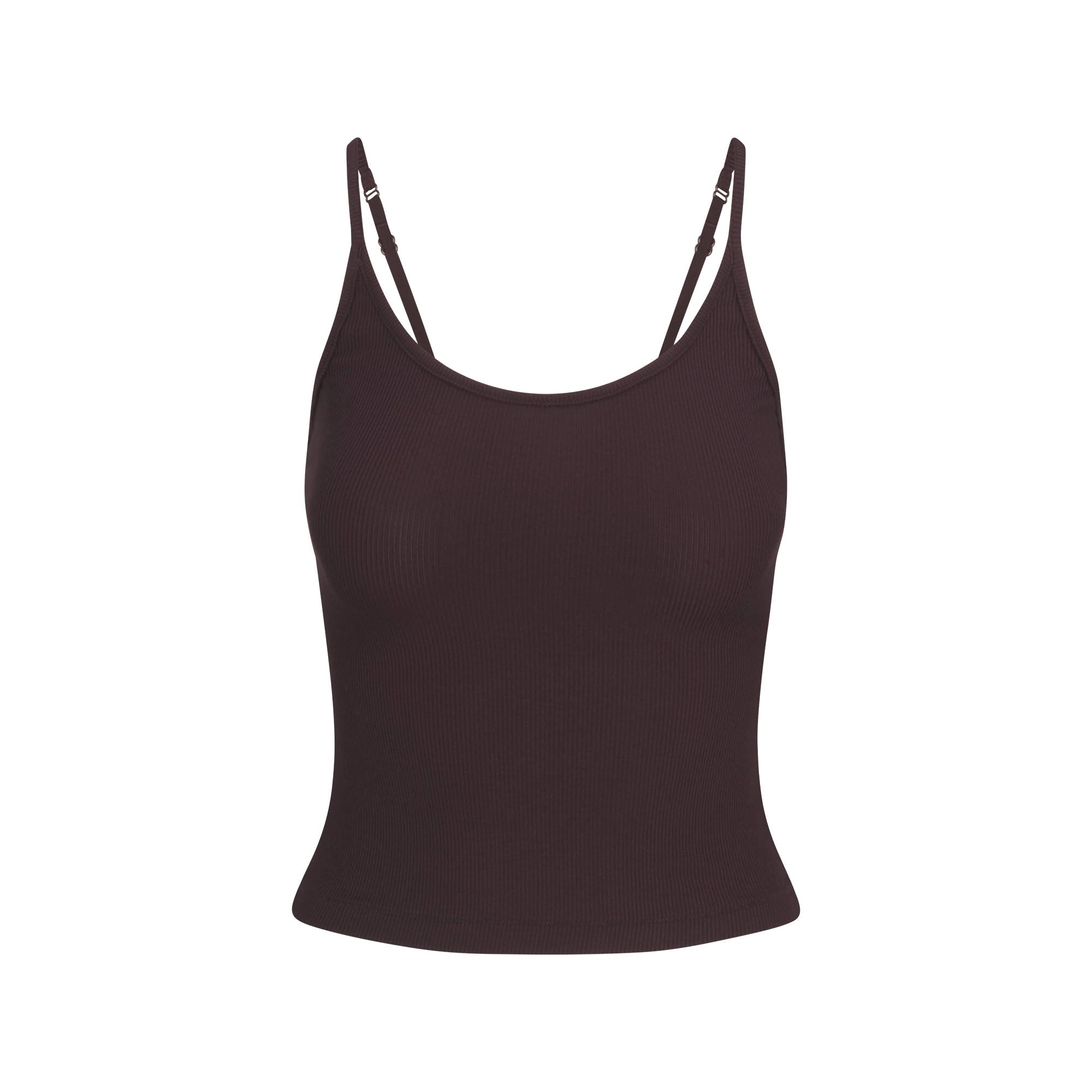 Dream in comfort. Made with our ultra-soft modal ribbed fabric, this sleep set includes a relaxed tank with a scoop neckline, adjustable straps, and skithtms logo detail at the center back neck. Features a straight leg pant with a soft knit elastic waistband and interior adjustable drawstring. Fits true to size.