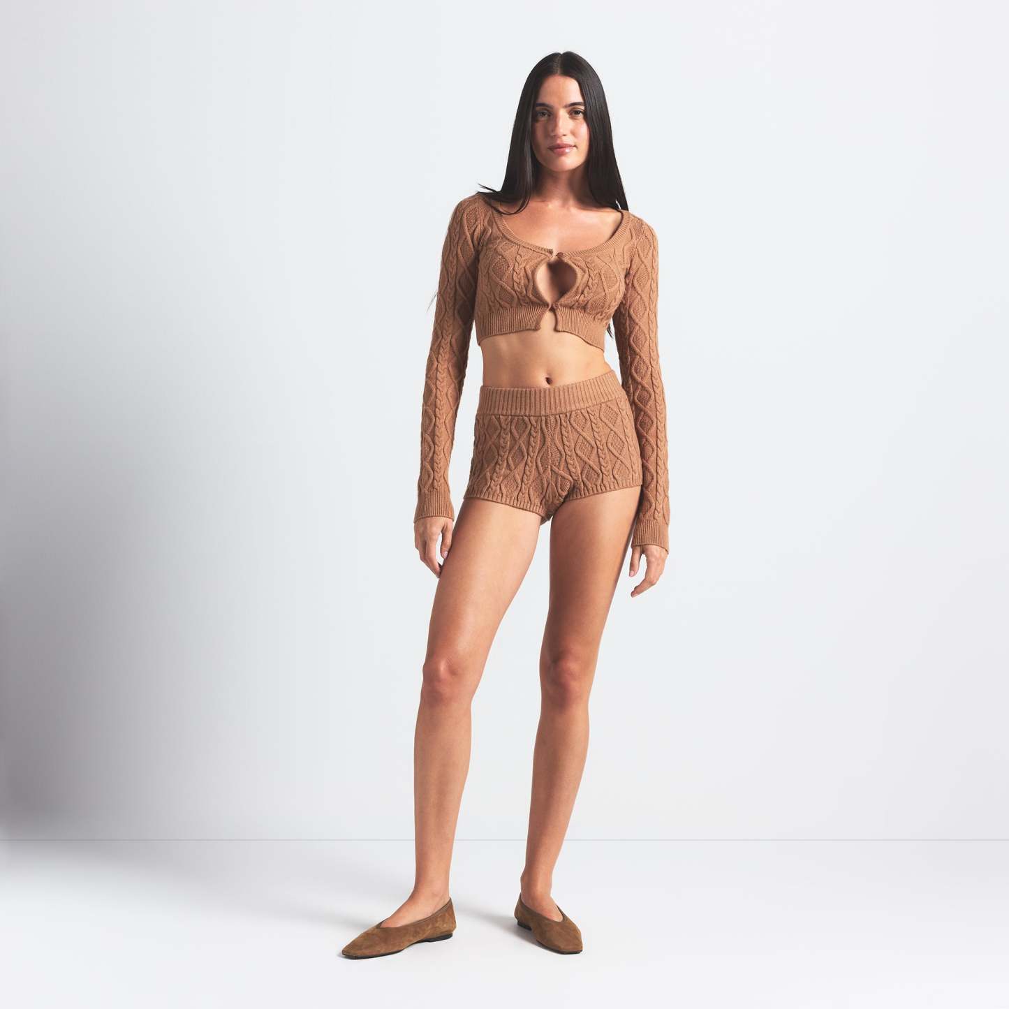 Short shorts on chilly days? We think yes. These mid-rise shorts are designed in our luxurious cable knit fabric with a cozy ribbed waistband for comfort. Perfect for lounging fireside or pairing with boots for a bold après-ski moment.