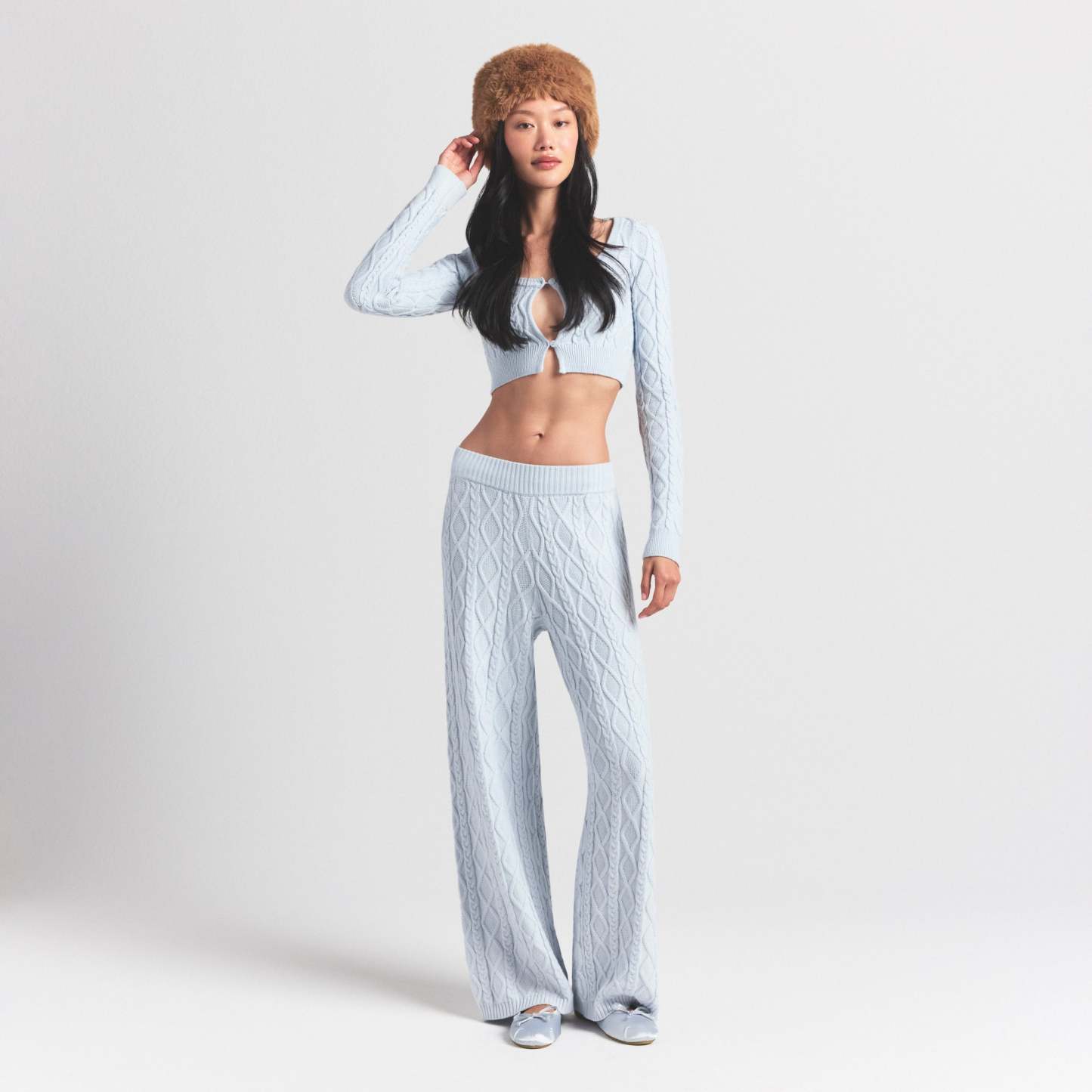 Snowed in, styled up. Designed in our luxurious cable knit fabric, these straight leg pants feature a ribbed waistband and adjustable drawcord. The perfect winter pant to pair with all your cold-weather layers.