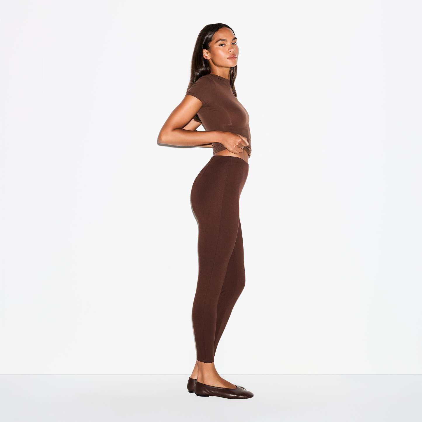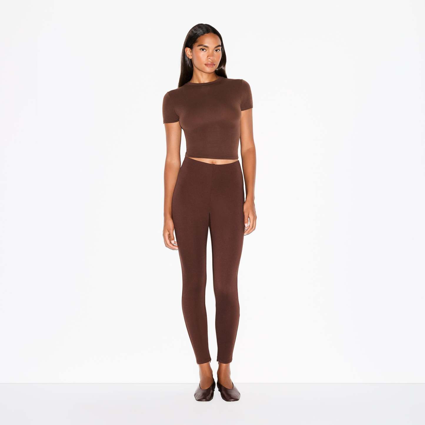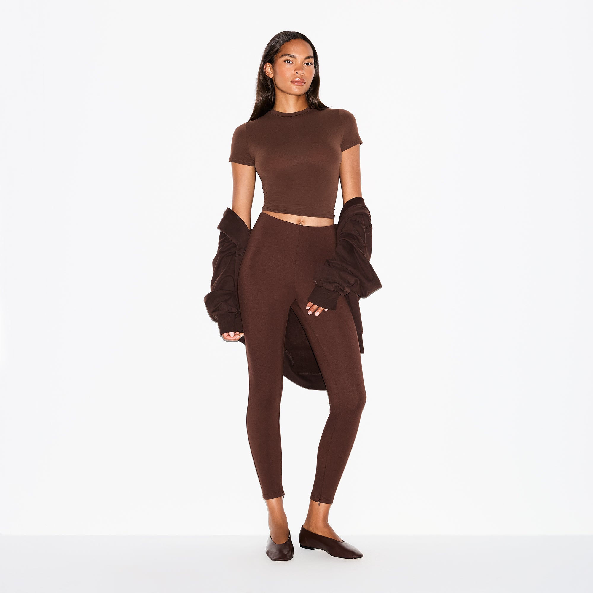 Polished, elevated style. Essential for work and play, these high-waisted, full length leggings are made from our soft and smooth mid-weight fabric. Features an elastic waistband, flattering back darts, and an invisible zipper at the side seam and hem. Complete with a woven skithtms logo on the interior waistband. Fits true to size.