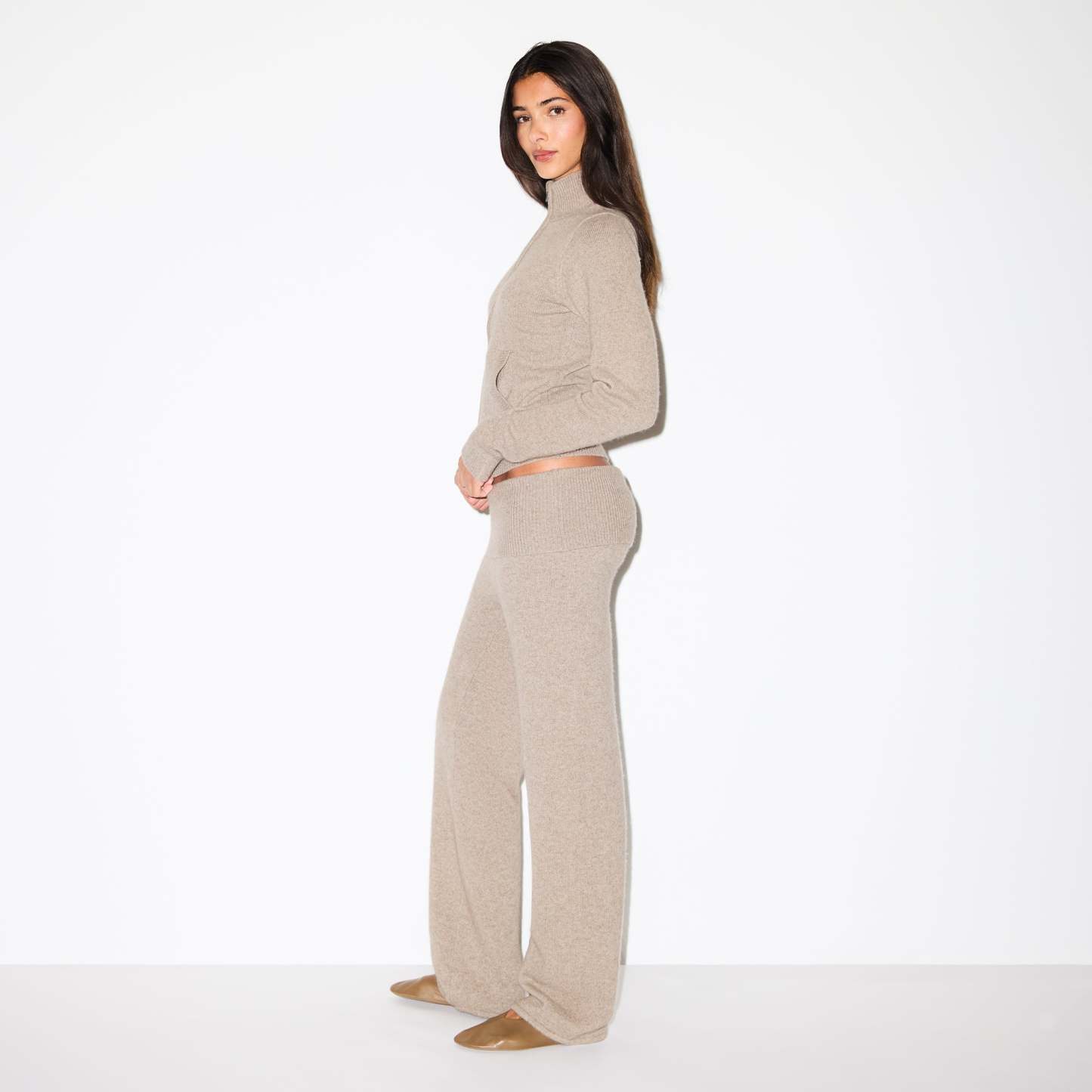 Elevated comfort meets refined style in this straight leg pant, made in our plush wool-cashmere blend. Features a foldover ribbed waistband and fits true to size.