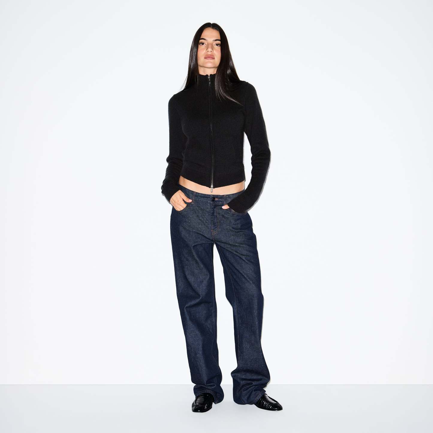 A layer that looks as good as it feels. Designed in our plush wool-cashmere blend, this relaxed, mock neck sweater features a two-way zipper and side pockets. Finished with ribbed details at the neckline, cuffs, and hem. Fits true to size.
